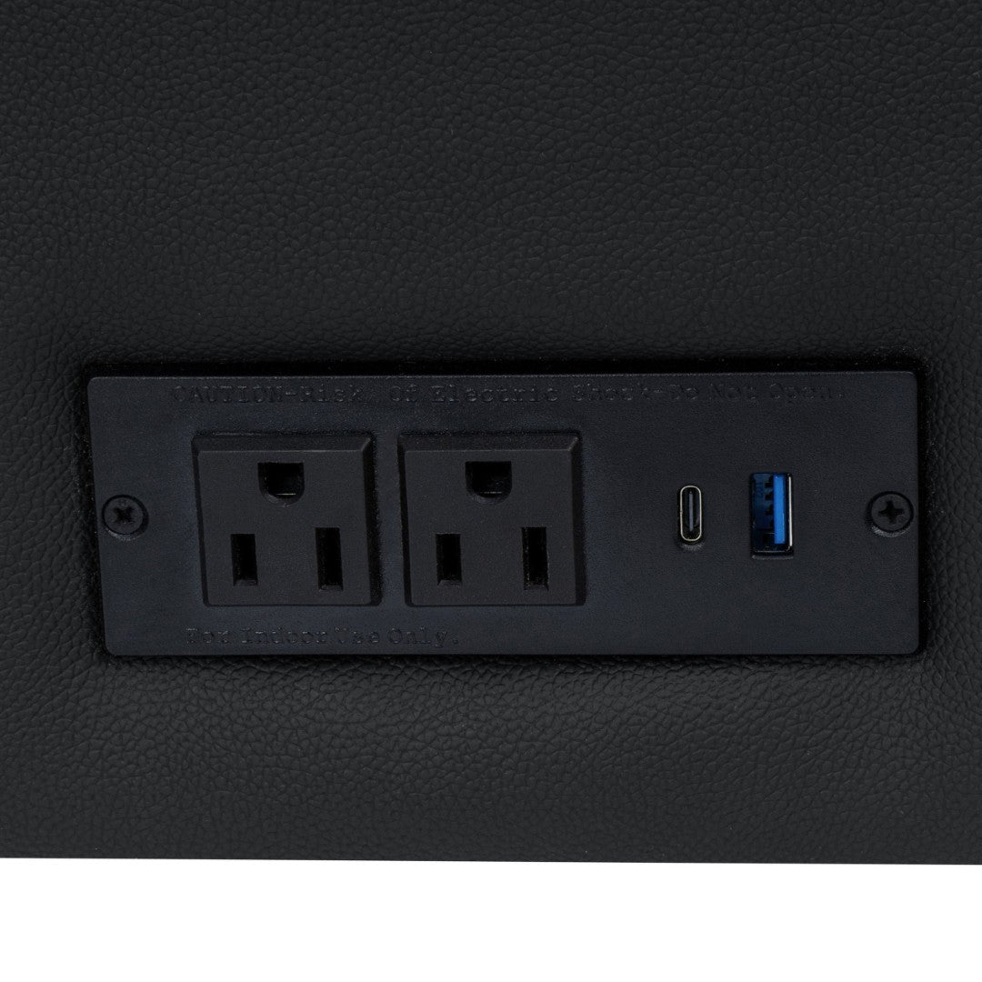- Integrated charging station: Right-arm charging module with 2 AC outlets, 1 USB-A and 1 USB-C port so visitors can power phones, tablets, and laptops while seated.