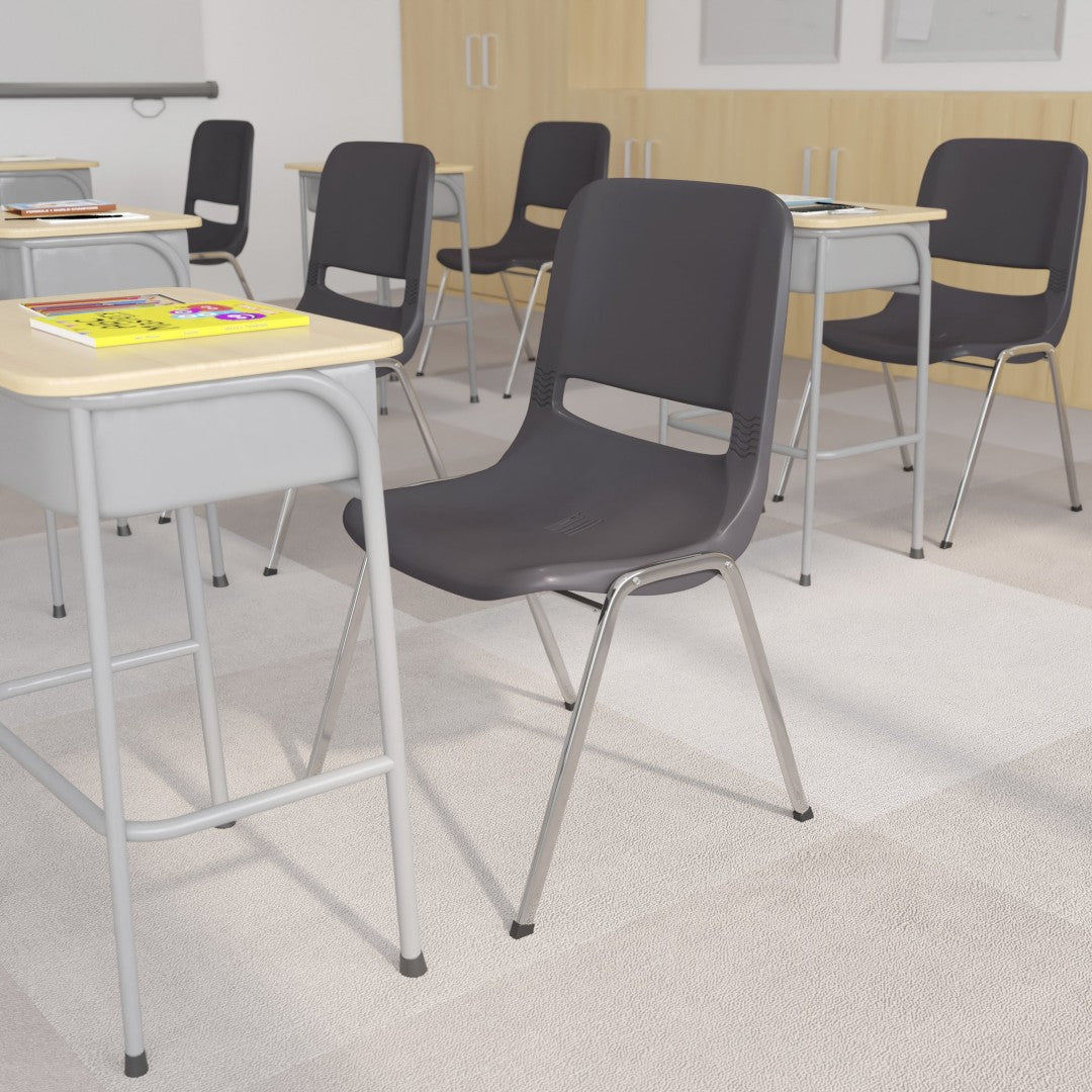 - Dimensions: 19.5" W x 23" D x 32" H — 18" seat height (approx.) for high school and adult education seating