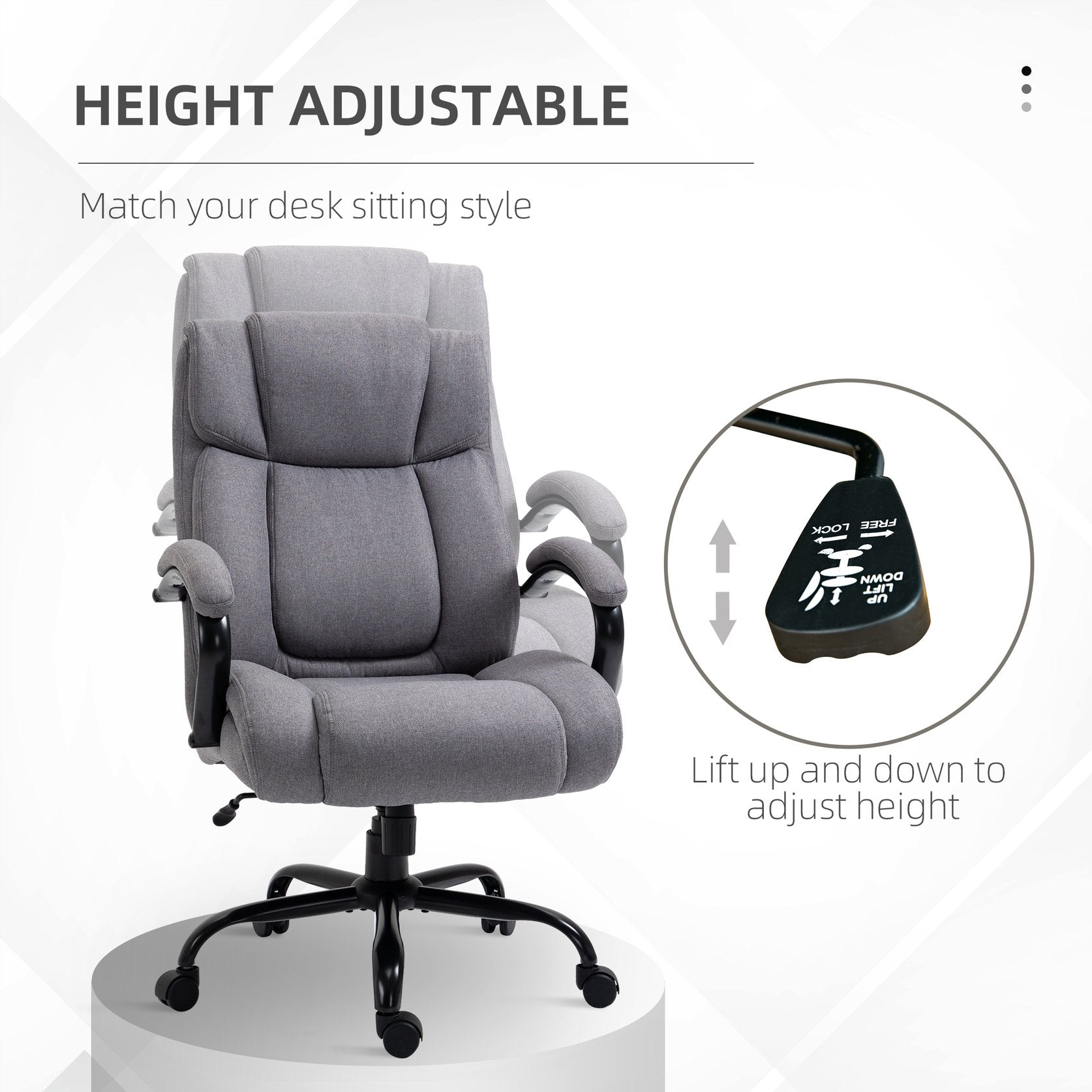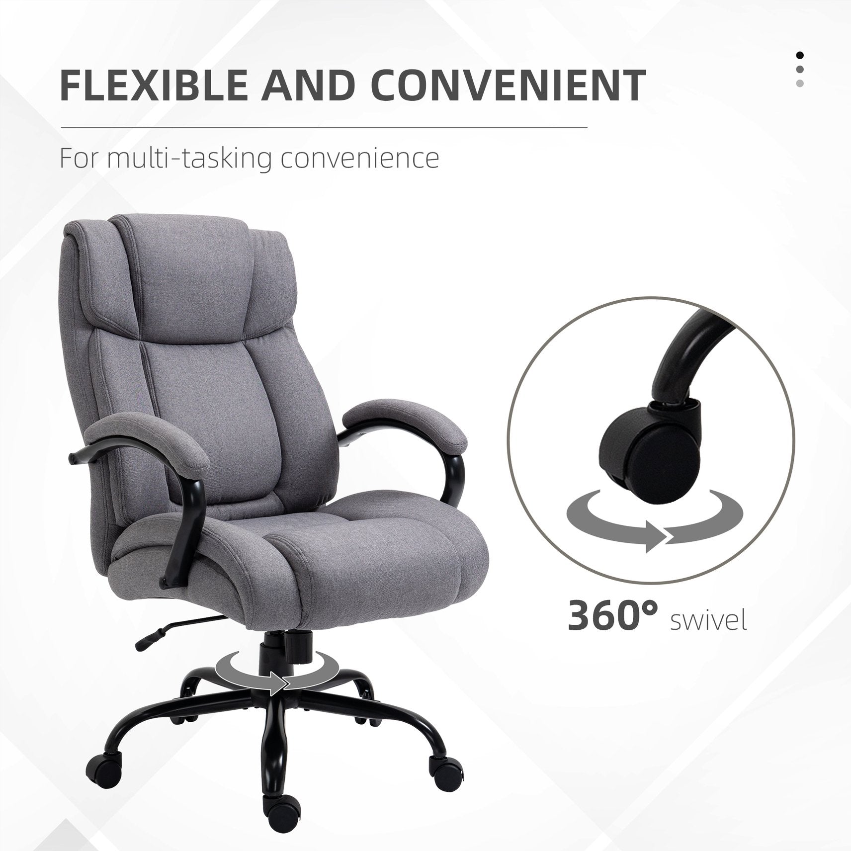 This high-back executive chair is designed for big-and-tall comfort without sacrificing style. Upholstered in breathable linen-feel fabric with generous high-density foam padding, it supports long hours at a desk while offering durable construction and smooth mobility. Ideal for home offices and professional workspaces, this chair combines an extra-wide seat, sturdy base, and adjustable features to accommodate larger users with confidence.