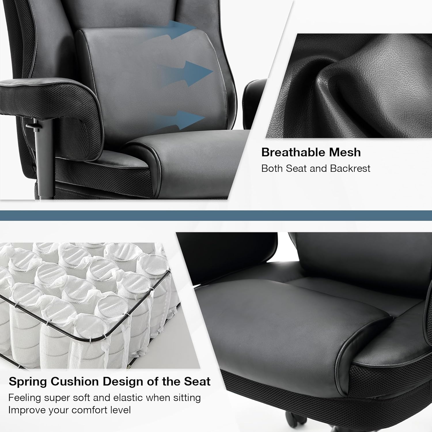 - 【DESIGNED FOR LARGE BODY】 Our wide seat office chair is suitable for most people, heavy metal base plate support, and is load-bearing up to 400 pounds. The backrest is wide and high, and the cushion is wide enough to be more comfortable when sitting and leaning, without feeling crowded. For heavier and taller people are very friendly. With silent universal wheels to reduce the noise of wheel sliding.