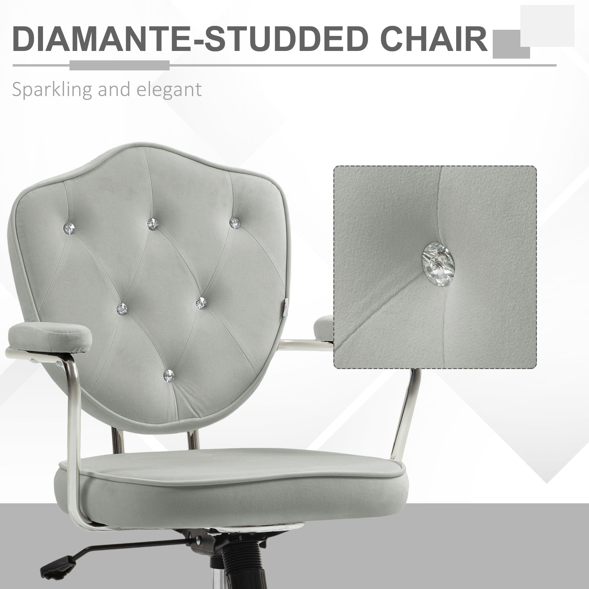 Add a touch of glam to your workspace with this compact, comfortable swivel chair—designed for home offices, vanity tables, and small work nooks. Upholstered in soft velvet-feel fabric with button tufting and rhinestone accents, it pairs style with practical features like height adjustment, tilt, and smooth rolling casters for easy mobility.