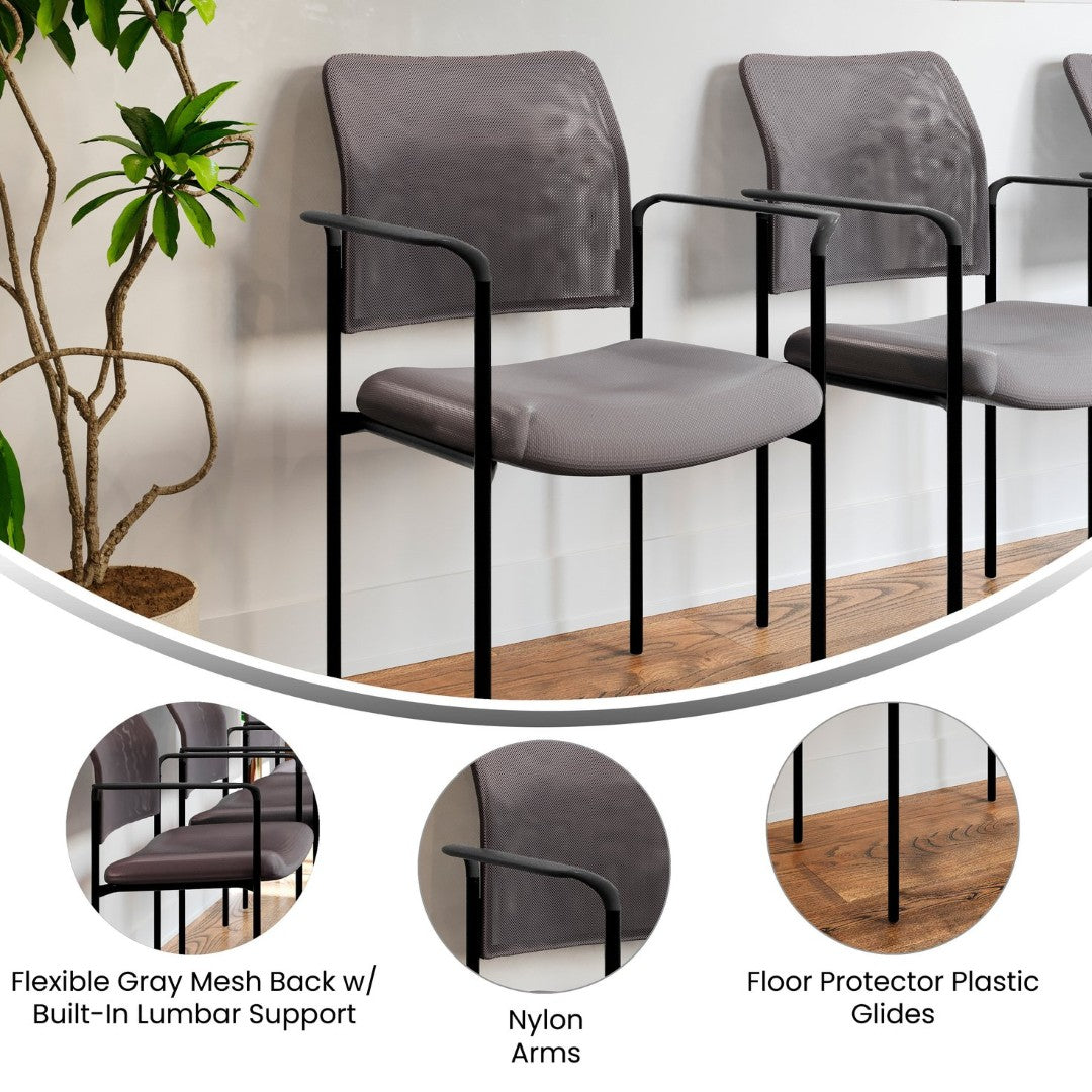 Bring contemporary comfort and durable functionality to your office, reception area, training room, or home with this sleek black mesh side chair. Designed for breathability and ergonomic support, it combines a breathable mesh back, built-in lumbar support, and a contoured padded seat on a sturdy steel frame — all while remaining lightweight and stackable for convenient storage and setup.