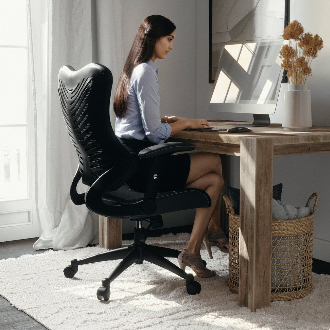 - High-back breathable mesh back for continuous air circulation and reduced heat buildup