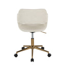 Bring contemporary elegance and everyday comfort to your home office with the Margarite task chair. Upholstered in rich brown faux leather and set on a gold metal base, this chair pairs modern styling with functional features—adjustable height, a supportive low back, and smooth 360° swivel make it ideal for focused work or casual use.