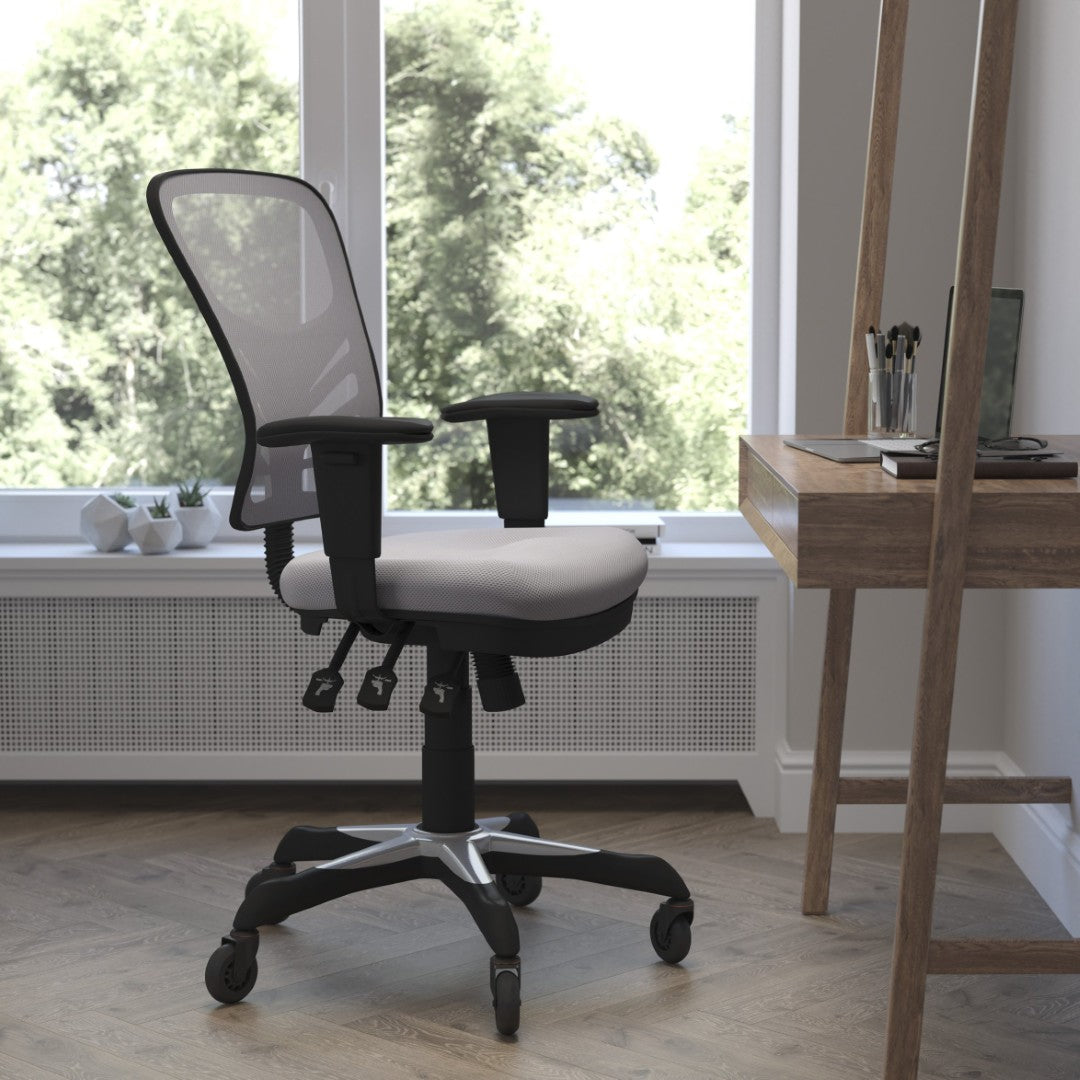 Bring modern comfort and professional style to any workspace with this mid-back ergonomic office chair. Designed for long shifts and active use, it combines breathable mesh, supportive contours, and smooth mobility so you can stay focused and comfortable whether working, gaming, or meeting. Easy adjustments let each user customize fit and tilt for posture-friendly seating throughout the day.