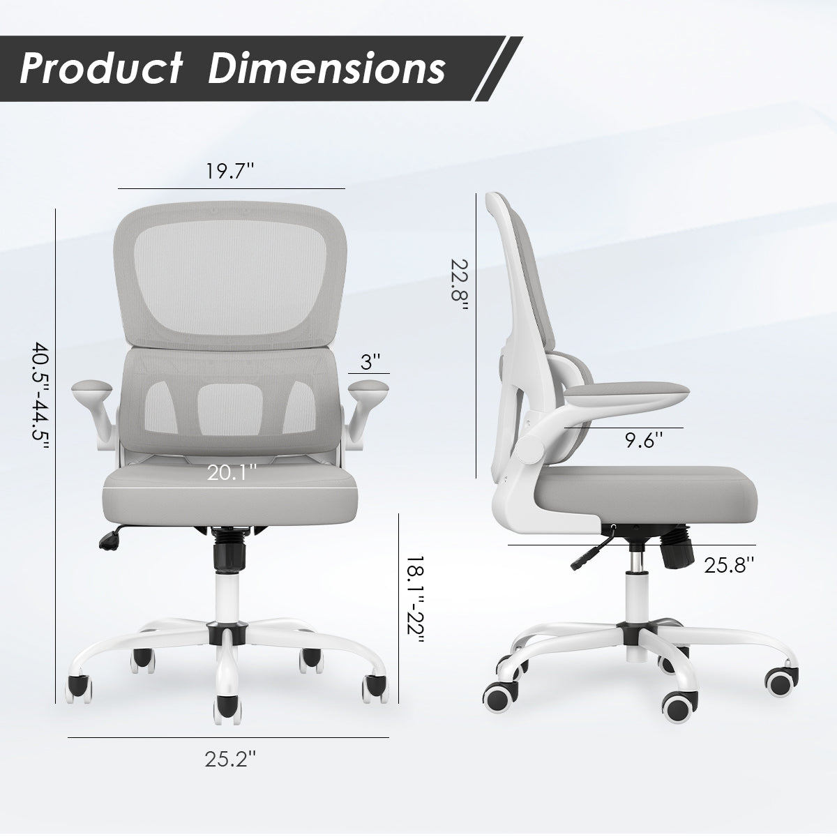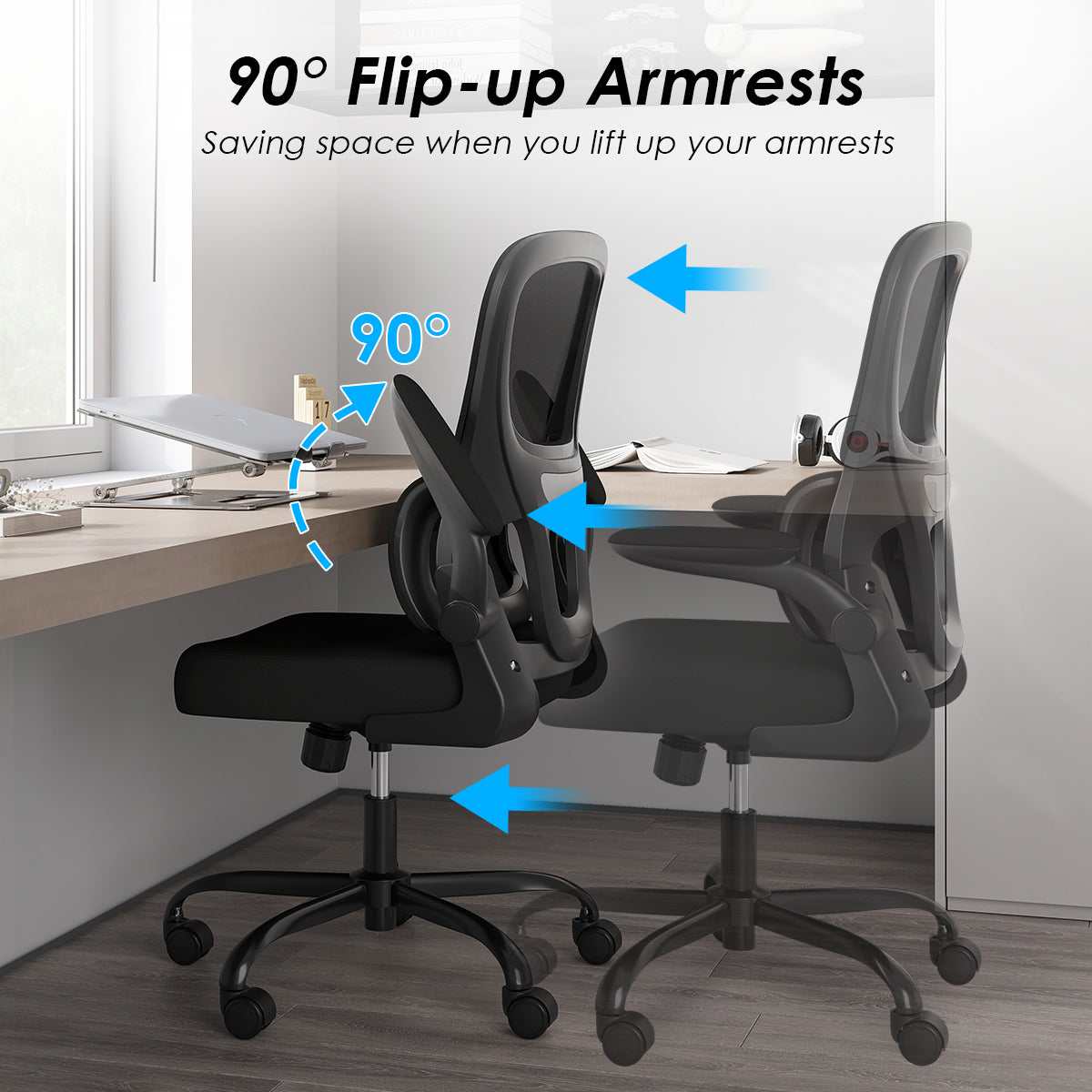 - SAVING SPACE - The mesh ergonomic office chair possess two flip-up armrests, which means this desk chair can put under your desk when you are not using your ergonomic task chair. So you can put the comfortable computer desk chair to any room because our ergonomic home office chair does not takes too much space