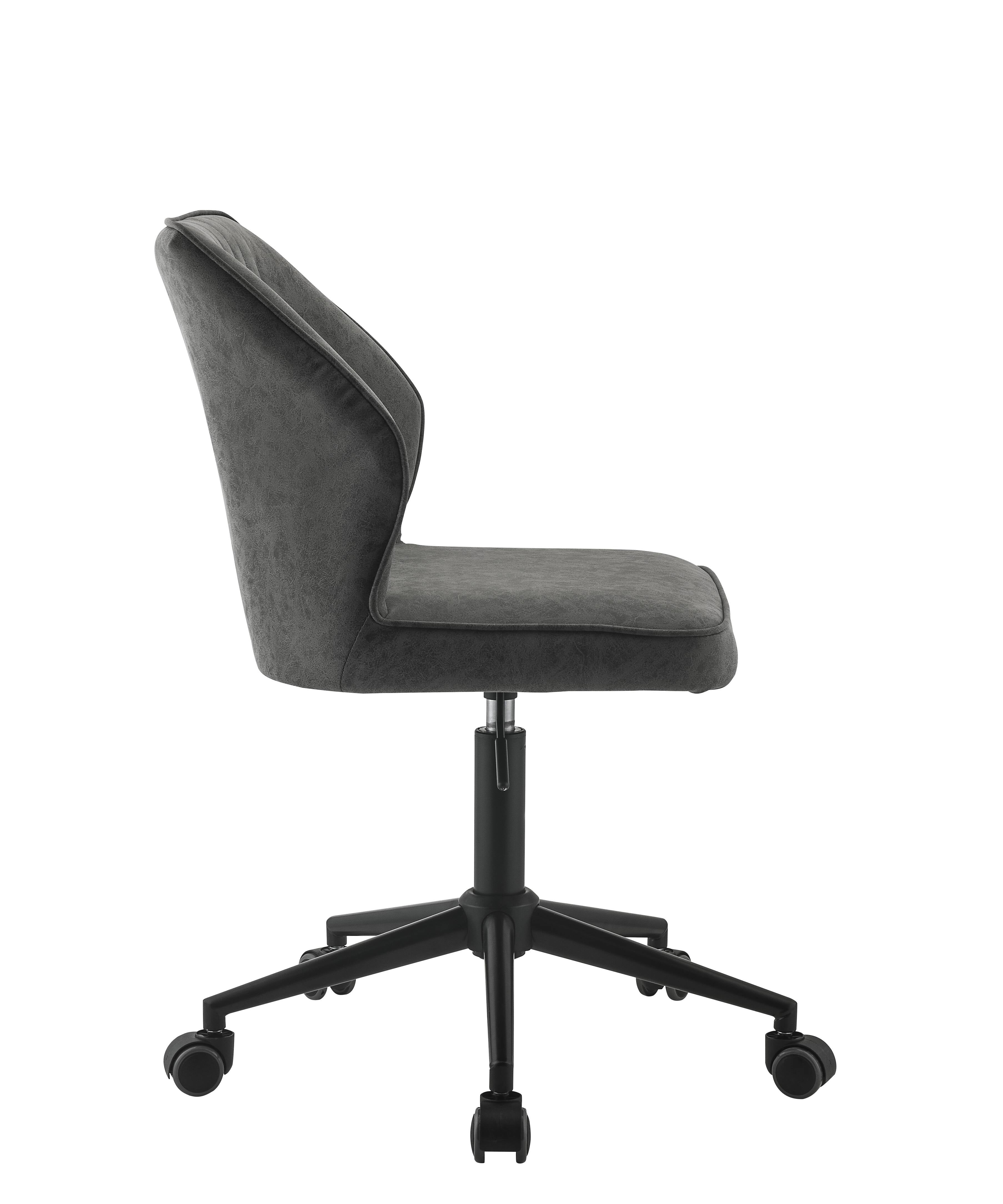 Bring classic vintage styling and everyday comfort to your workspace with this Pakuna office chair. Upholstered in gray PU faux leather with a solid high back and padded seat, it pairs a streamlined armless profile with a robust metal and wood frame for reliable support. Smooth 360° swivel and an adjustable gas-lift allow personalized seating height, while a five-star black-finish base with casters provides mobility and stability—ideal for home offices, studios, or reception areas that favor minimalist, mid-century inspired design.