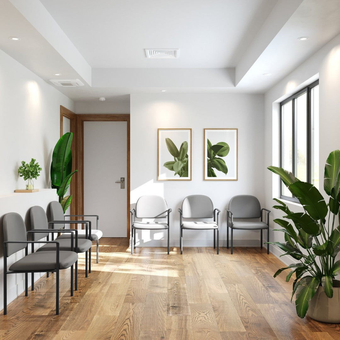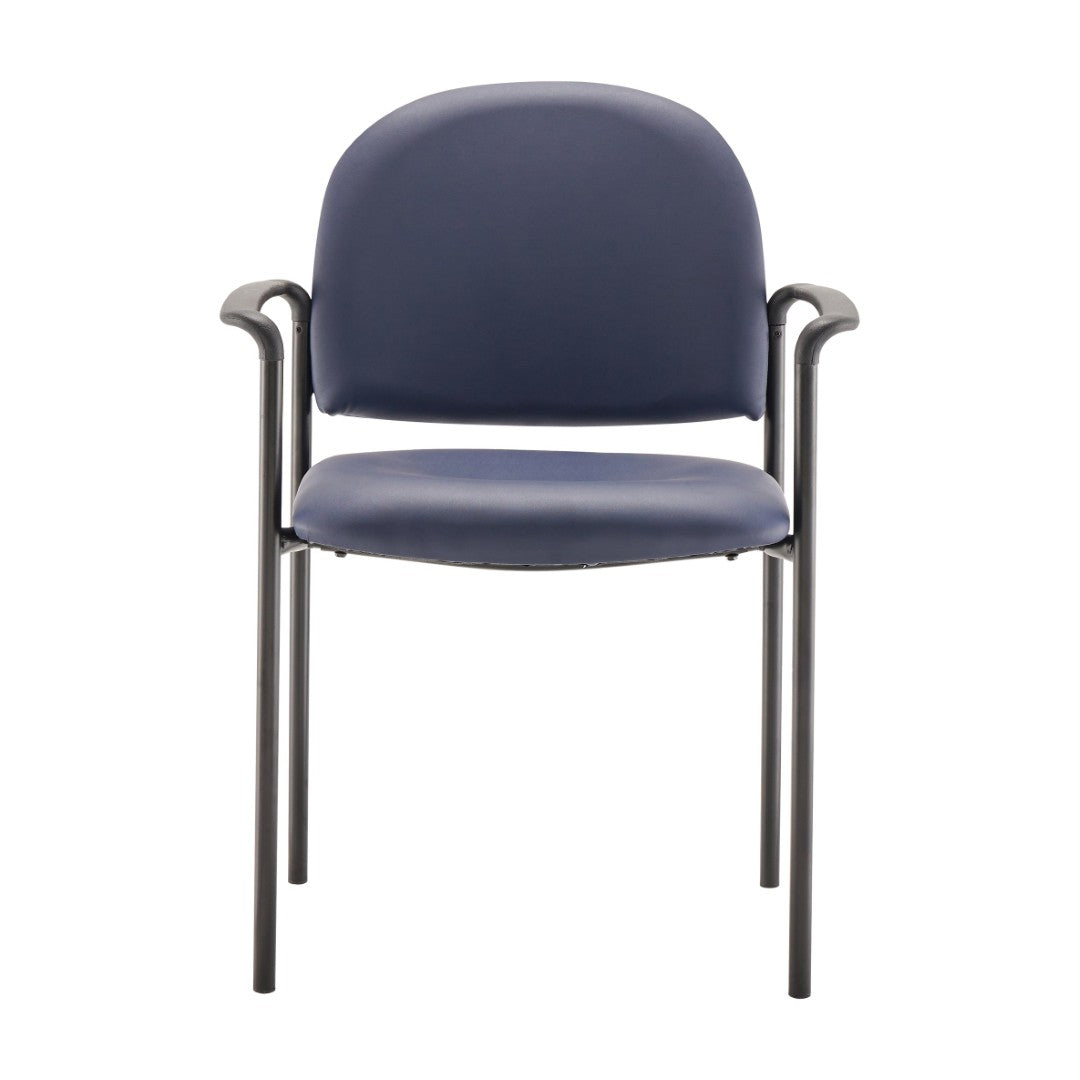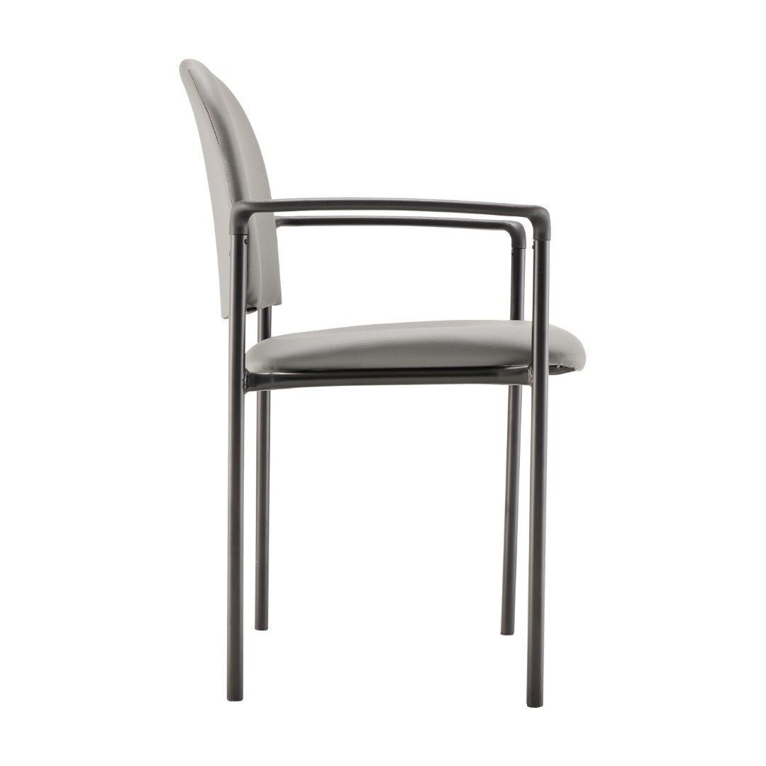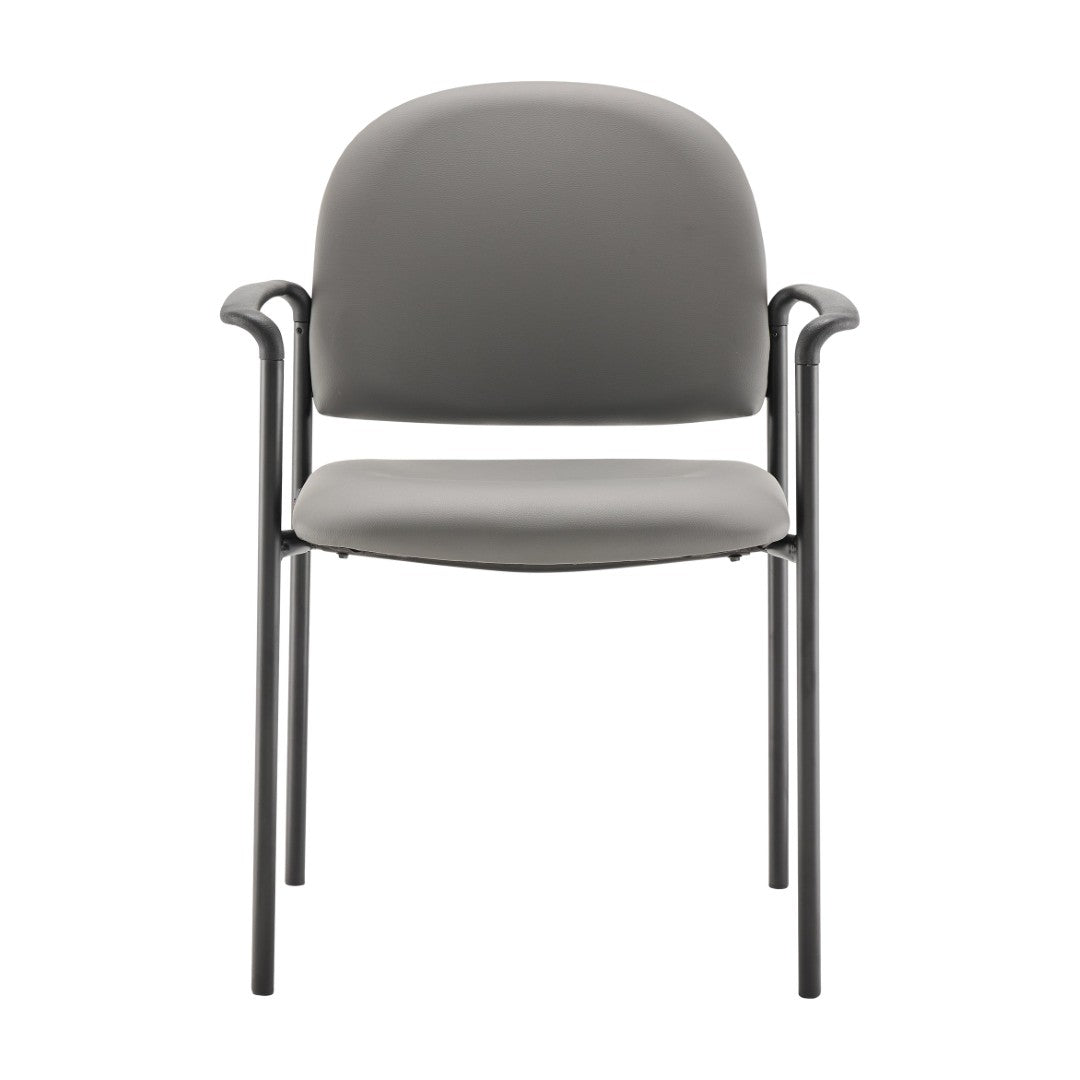 Enhance your waiting area or event seating with a sleek, comfortable chair designed for durability and easy storage. This gray vinyl reception chair combines ergonomic comfort with a sturdy steel frame and a stackable design, making it ideal for lobbies, salons, offices, classrooms, or temporary event seating. The contoured, padded seat and protective floor glides make it guest-ready while the powder-coated steel frame ensures long-lasting performance and a clean, professional look.