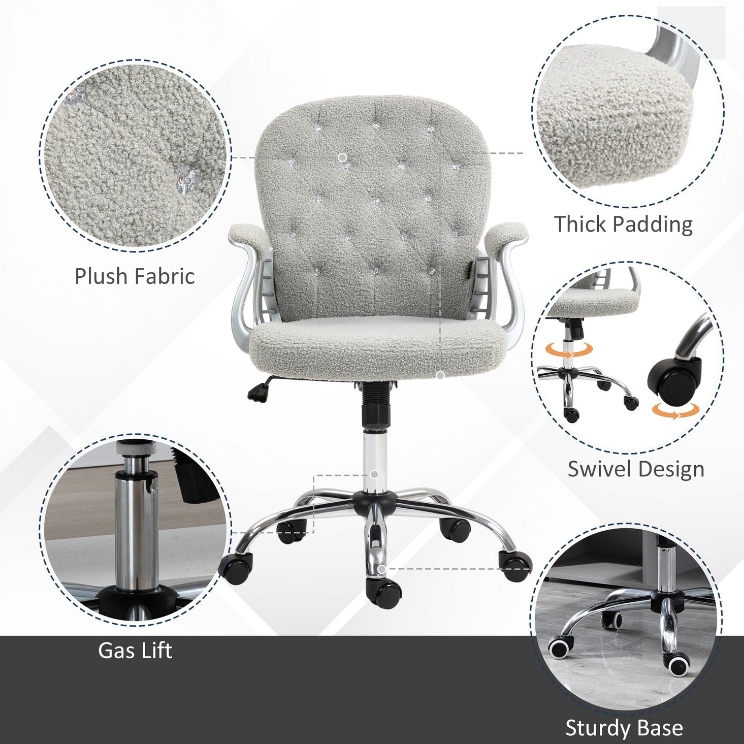 Sink into cozy support with the Vinsetto Teddy Fleece Home Office Chair — a stylish, comfortable desk chair designed for long hours of work or relaxed breaks. Covered in plush teddy fleece and finished with button tufting, this chair combines soft texture with ergonomic features like padded armrests, adjustable height, tilt tension control, and smooth 360° mobility to keep you comfortable and productive.