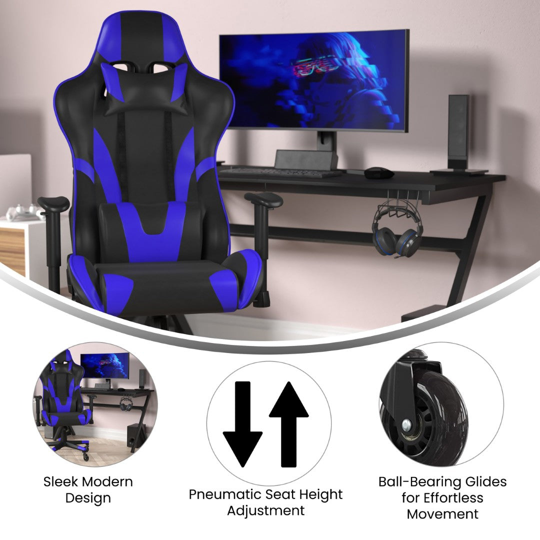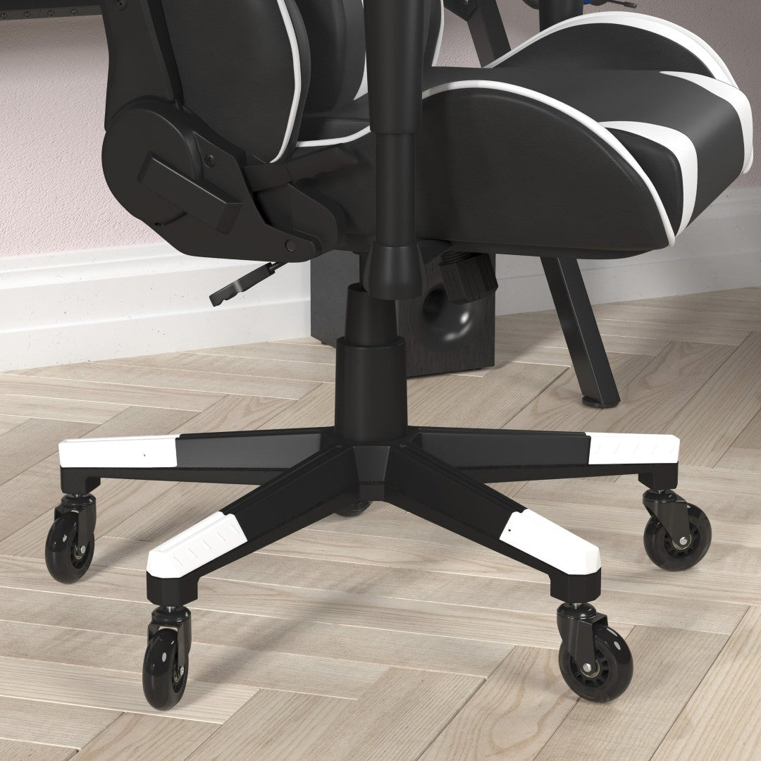 Sink into long-session comfort with a sleek racing-style design built for gamers and professionals alike. This ergonomic high-back chair combines durable LeatherSoft upholstery, adjustable support, and smooth transparent roller wheels to keep you comfortable and mobile through marathon gaming, long workdays, or creative sessions.