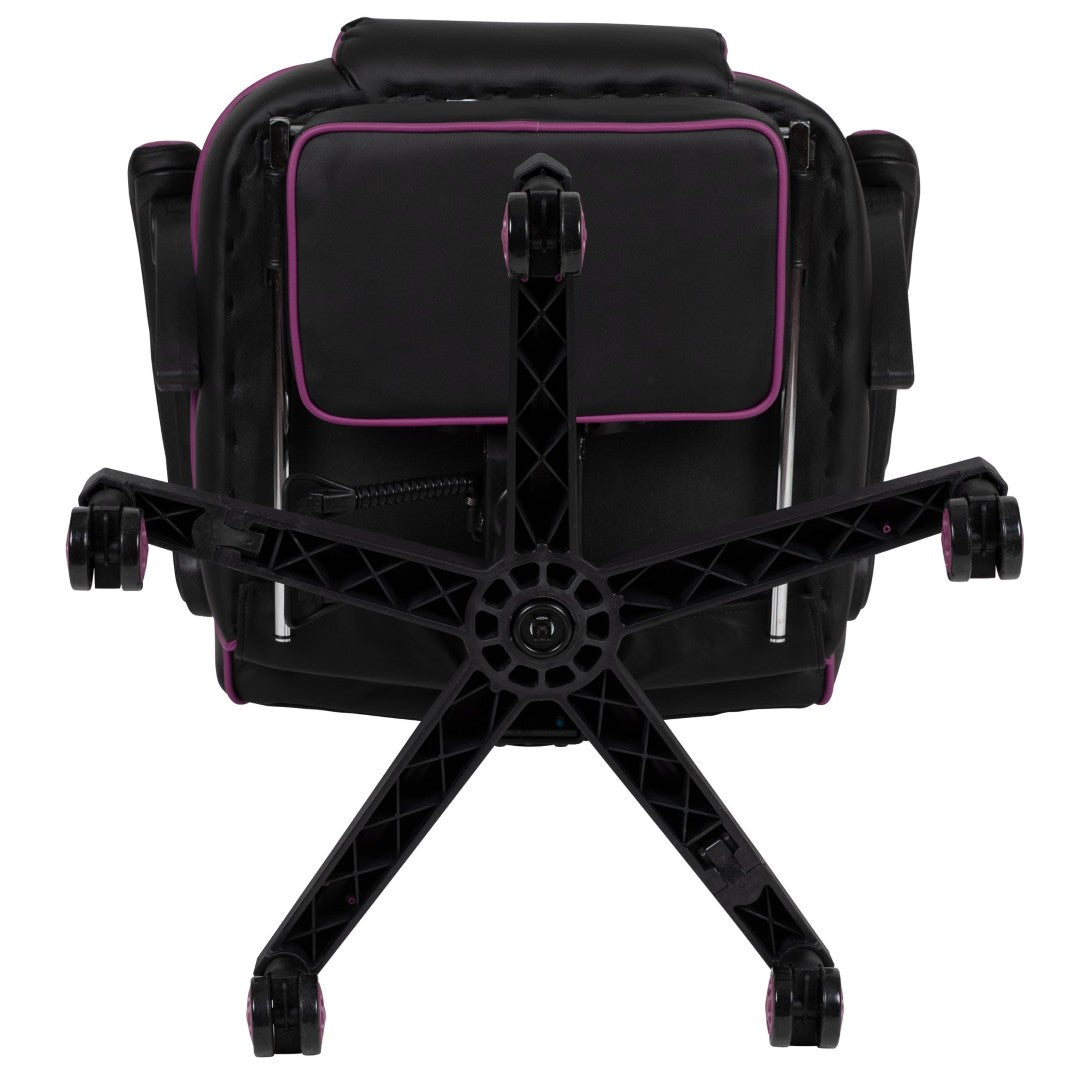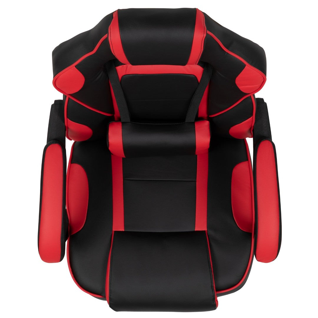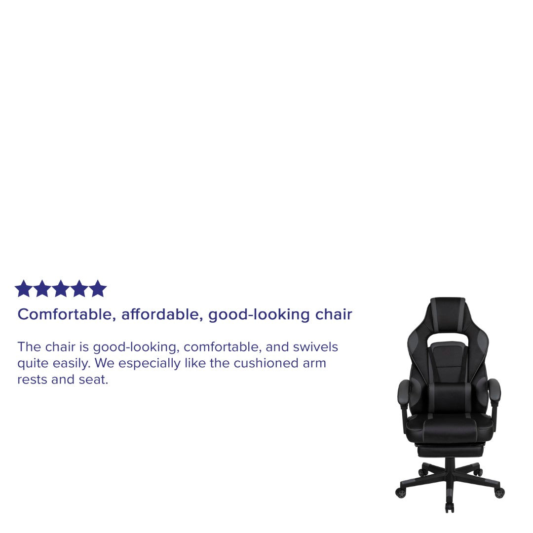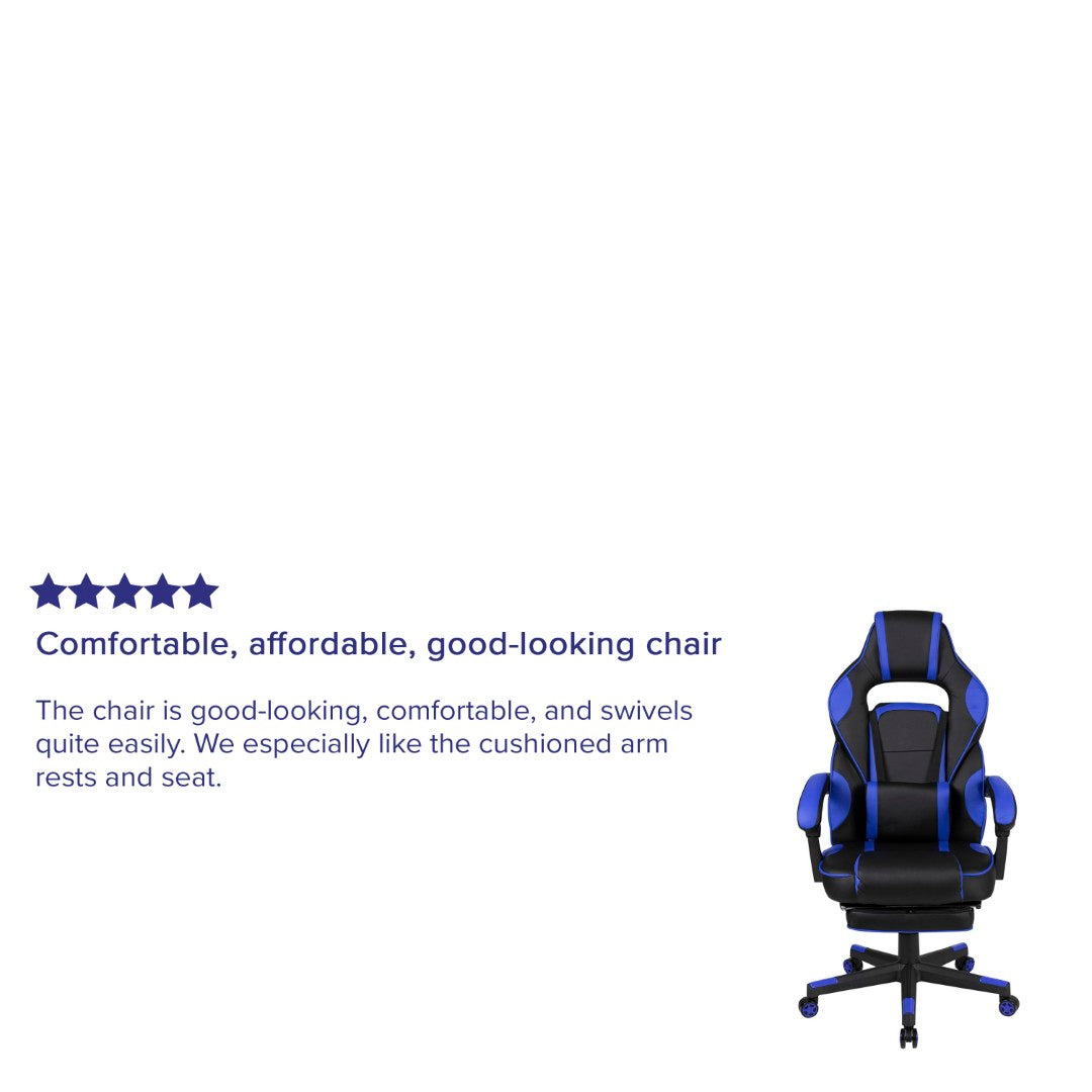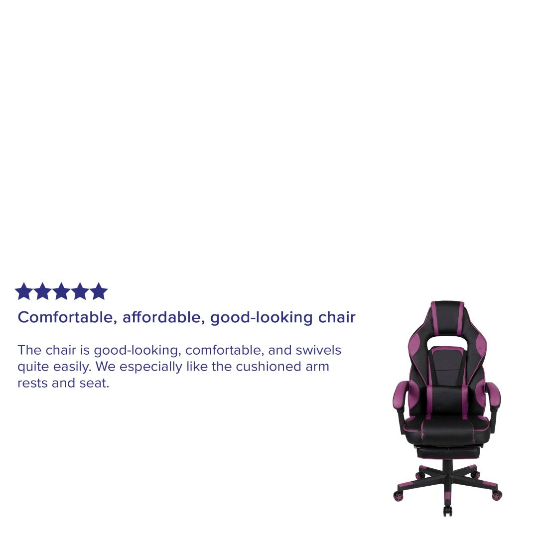 Sink into immersive comfort with this ergonomic gaming chair designed for long sessions—whether gaming, working, or studying. Thick padded cushions, a removable vibrating lumbar pillow, fully reclining back and arms, and a slide-out footrest combine to reduce pressure, support posture, and help you relax between rounds. Durable materials and smooth mobility make it practical for home offices, dorms, and gaming setups.