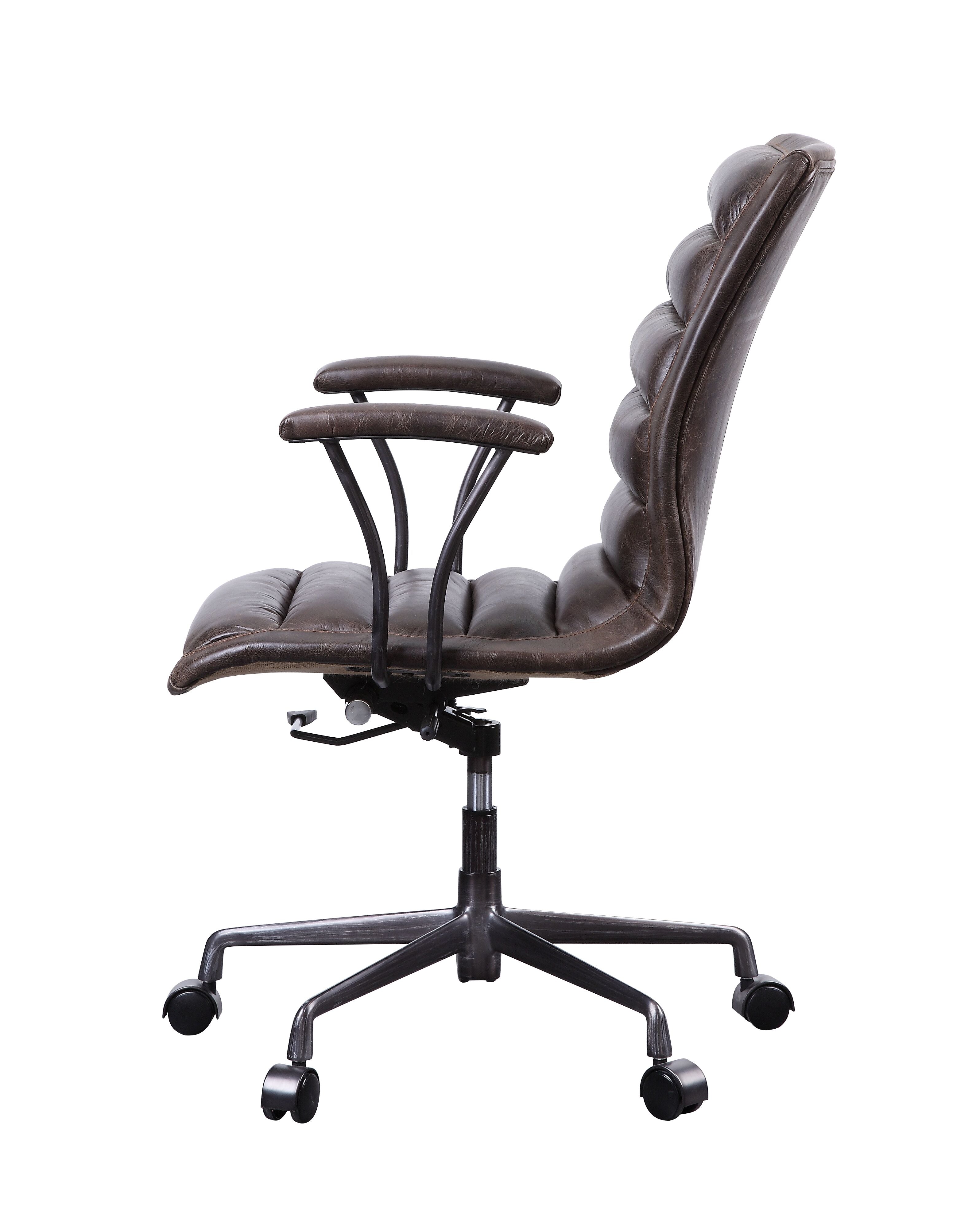 Sink into refined comfort with the Zooey Distress Chocolate top-grain leather office chair — a sophisticated blend of classic styling and modern ergonomics designed for executive workspaces and home offices. Rich chocolate leather, padded armrests, and a durable metal base deliver long-lasting comfort and professional presence while the adjustable features let you customize your seating for all-day productivity.