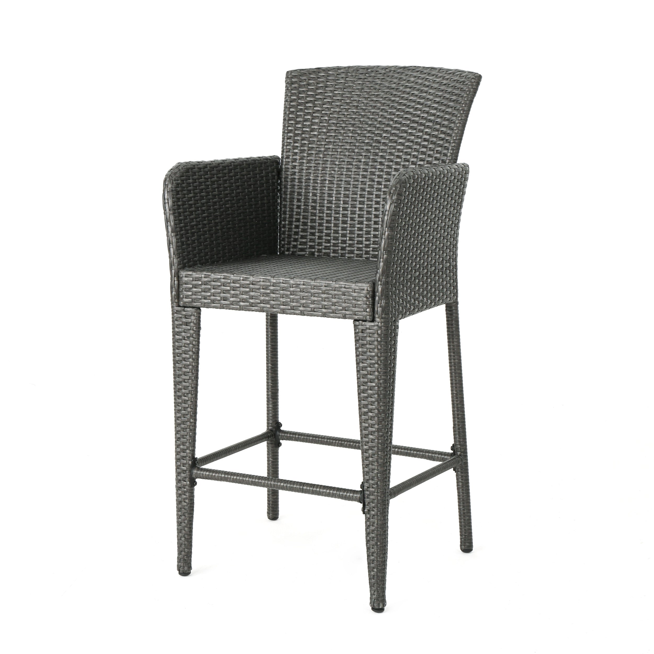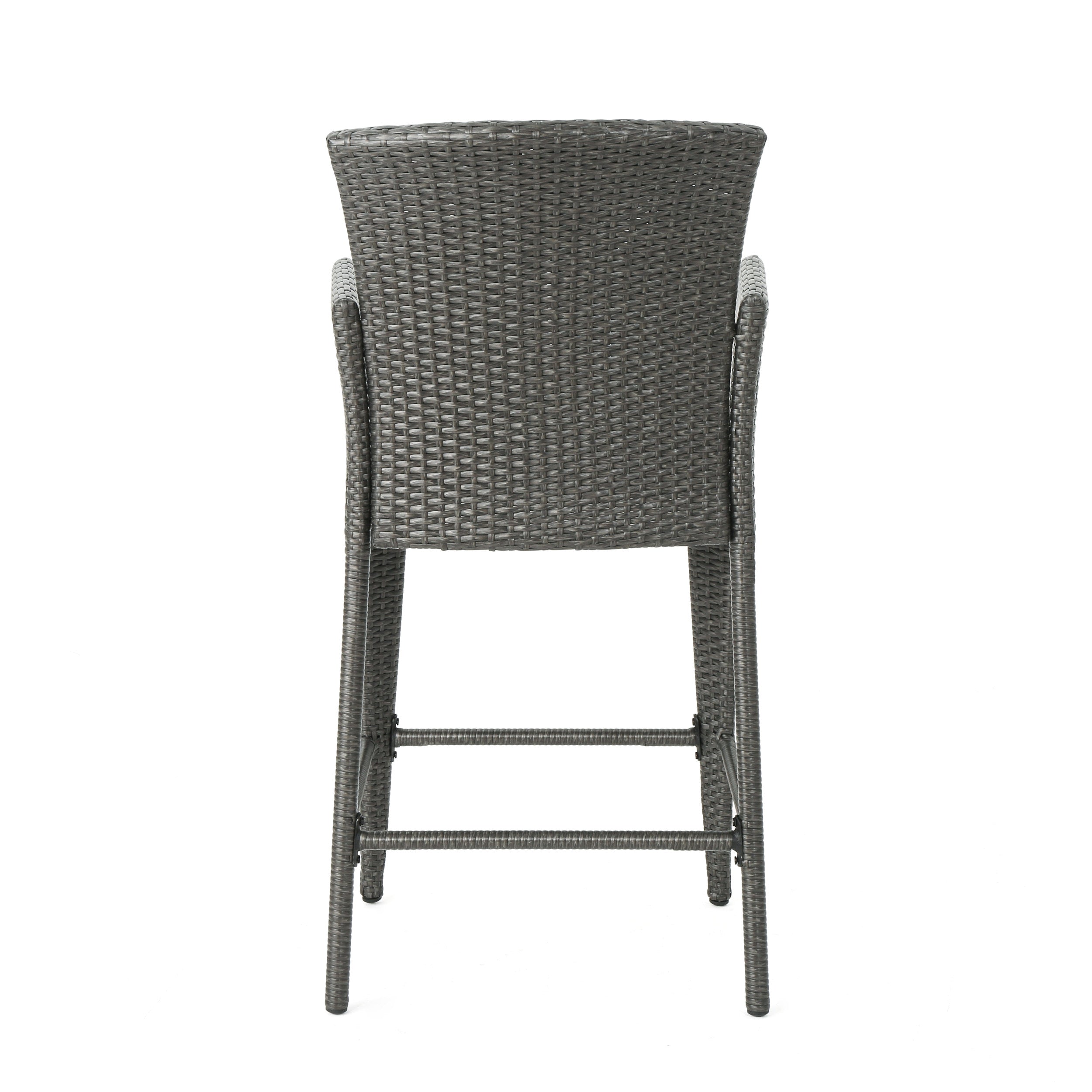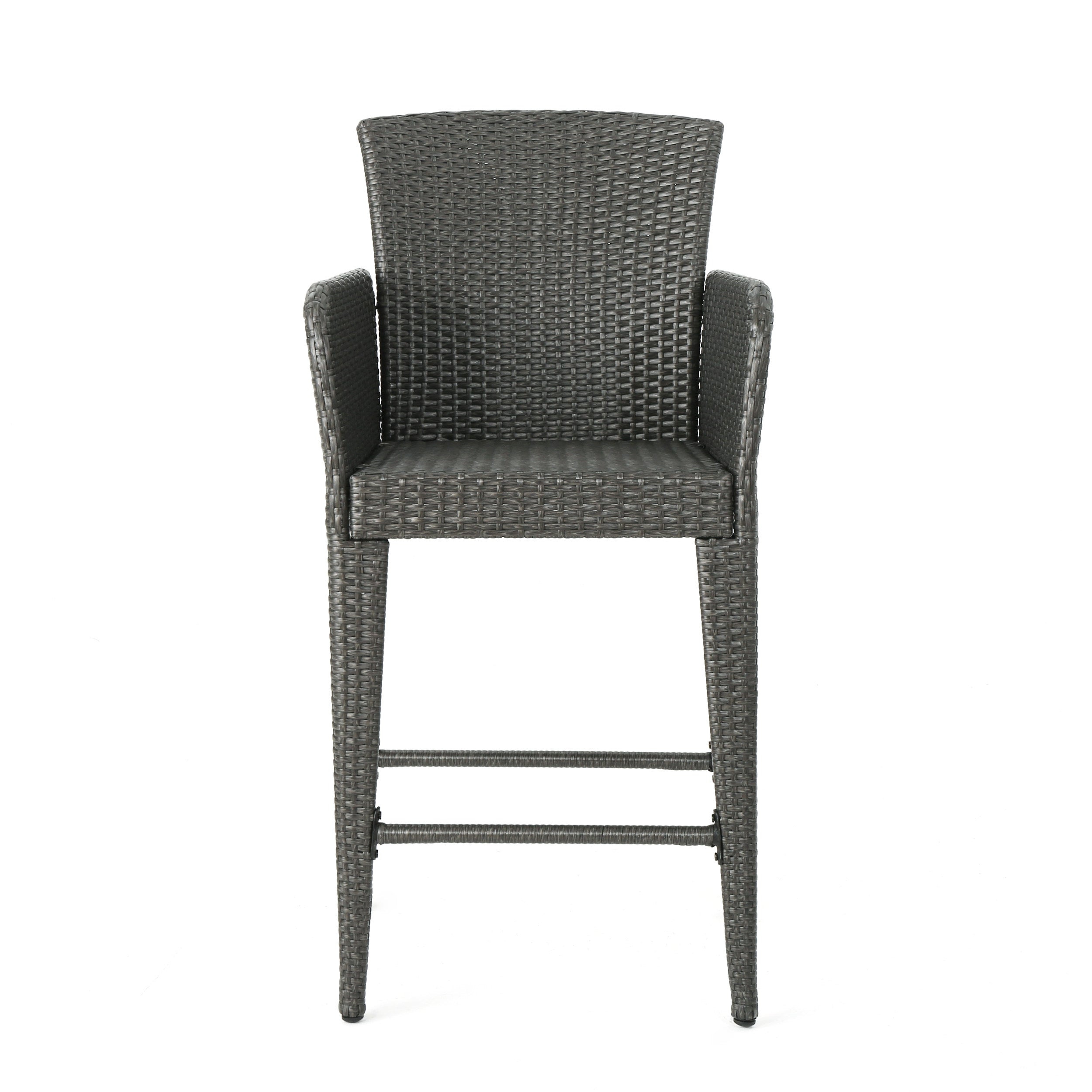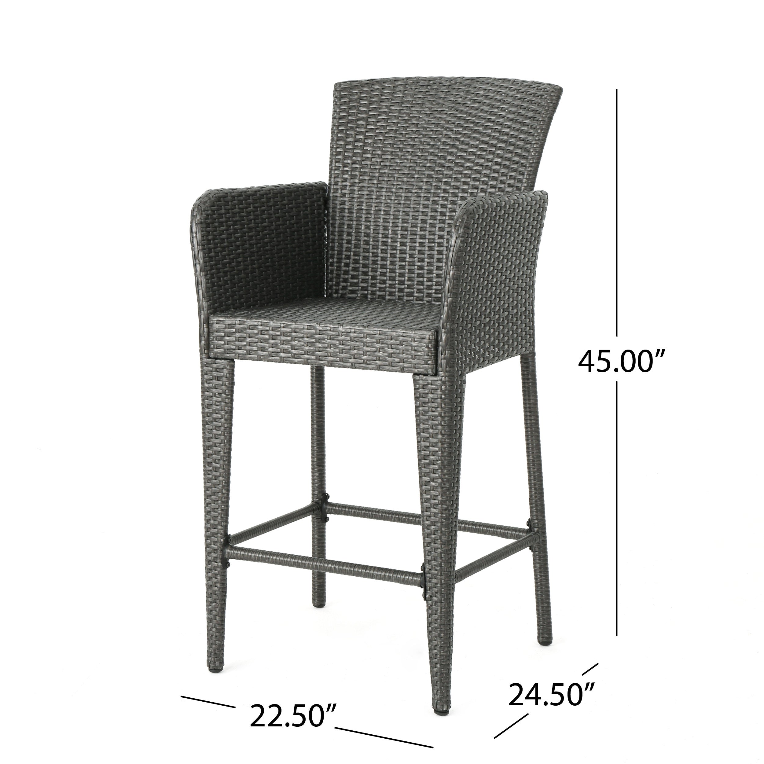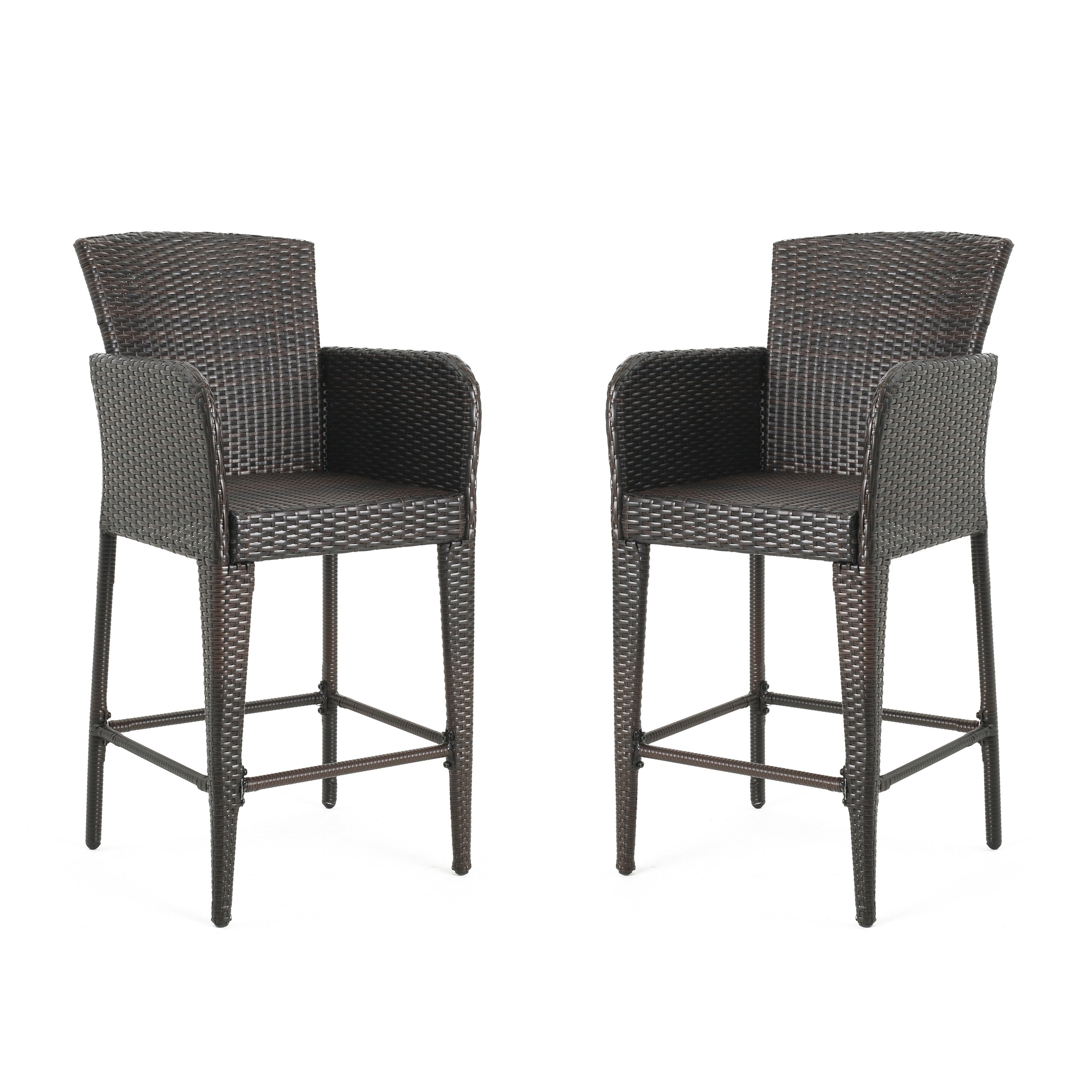 Add comfortable, weather-resistant seating to your outdoor bar or patio with this set of two Anaya barstools. Designed for durability and style, the woven PE wicker over powder-coated iron frames offers a refined look that holds up to outdoor conditions, while integrated foot rails and a well-proportioned seat ensure relaxed, supportive seating for entertaining or everyday use.