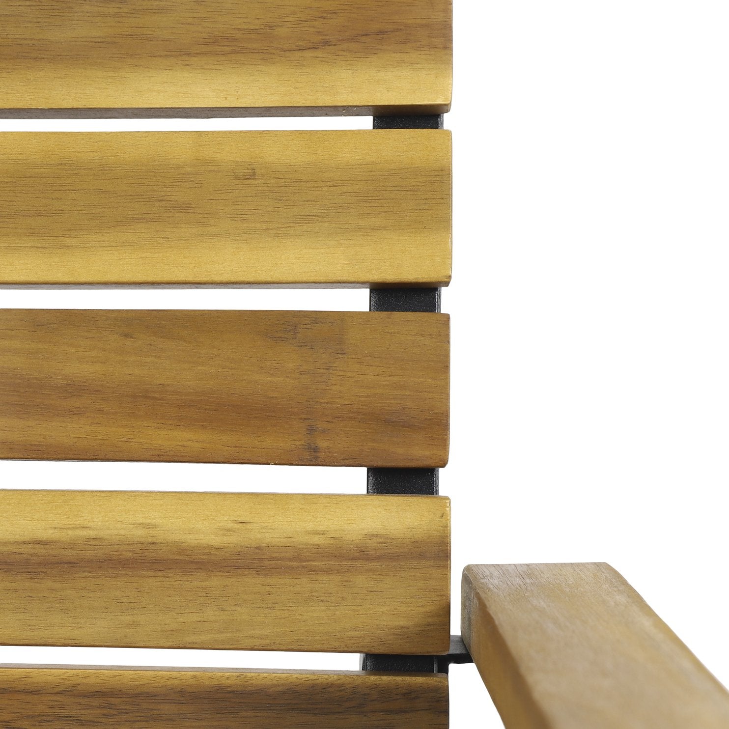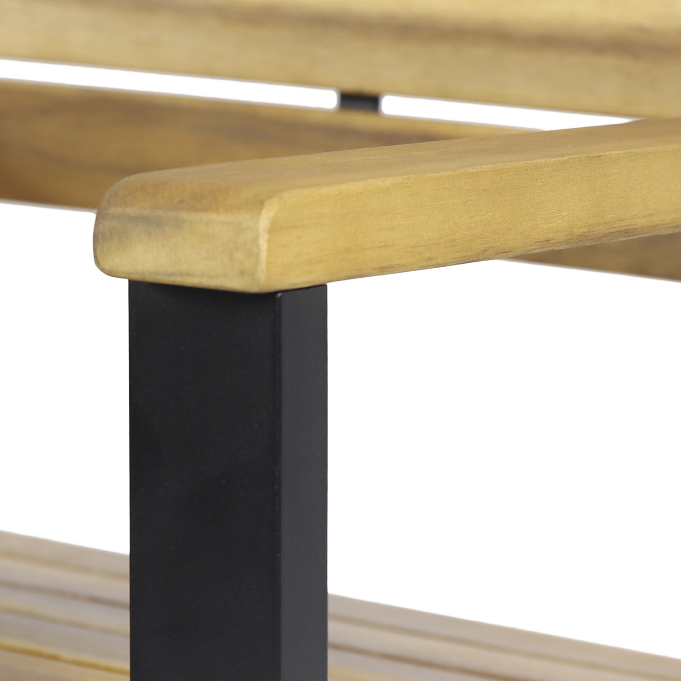 - Materials: Solid acacia wood seat and back; iron legs for lasting stability