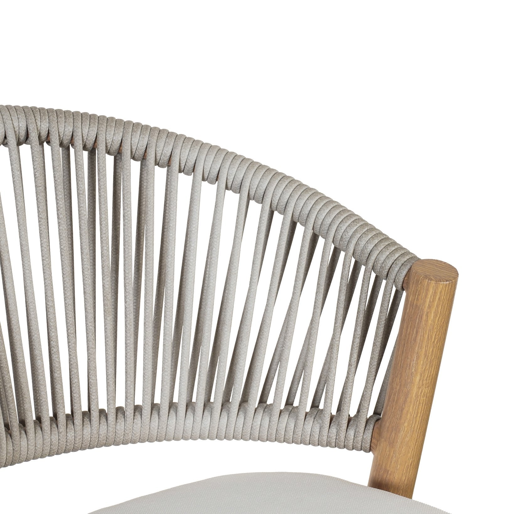- Scallop-shaped Backrest: Featuring a long-lasting woven finish, this rope-like wicker style is not only incredibly durable but also provides a versatile appearance. The scallop-shaped backrest and the intricate details of this material allow this piece to blend seamlessly with your outdoor decor.