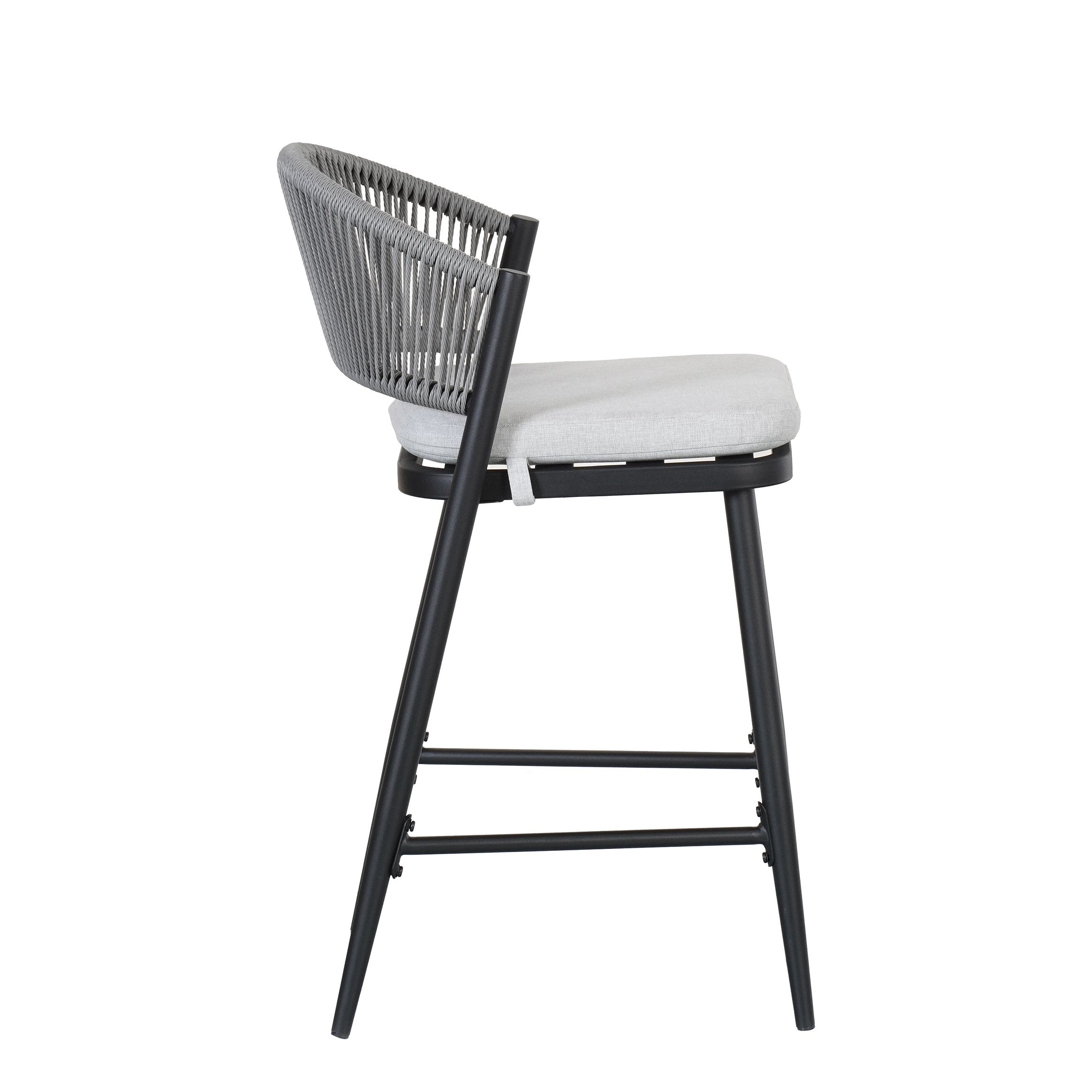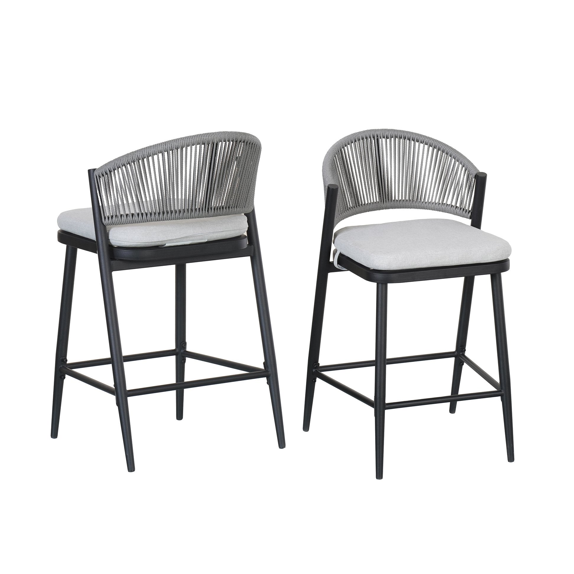 Brighten your outdoor seating area with this elegant set of two counter stools, blending weather-ready materials and refined design. Ideal for patios, poolside bars, or alfresco dining, each stool pairs a sculptural scallop-shaped backrest with a durable metal frame and comfy water-resistant cushion for everyday comfort and lasting style.