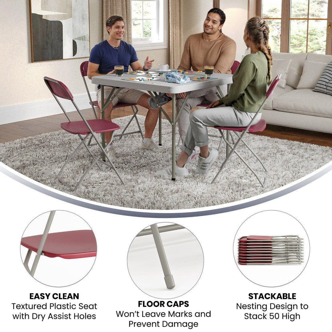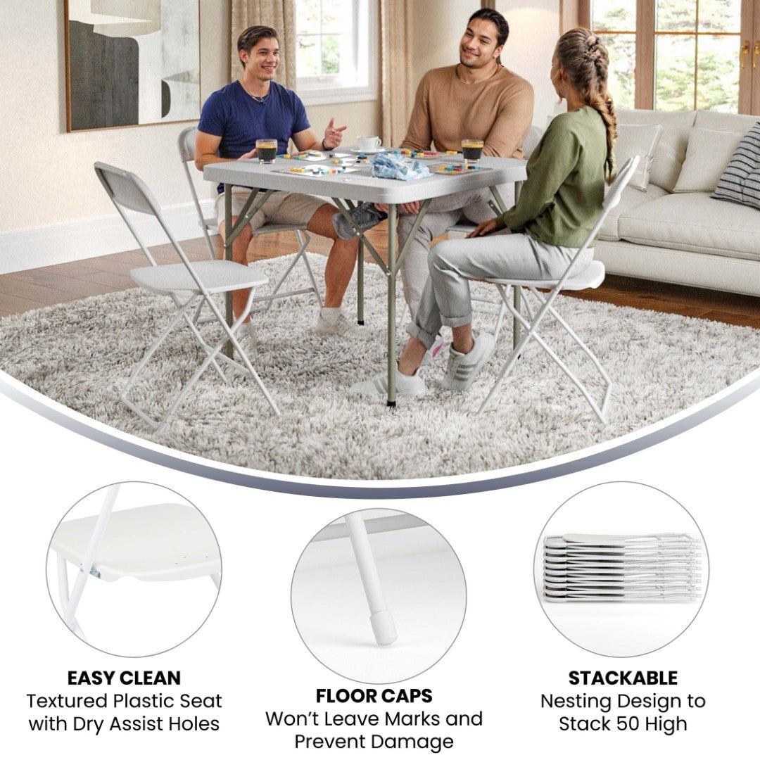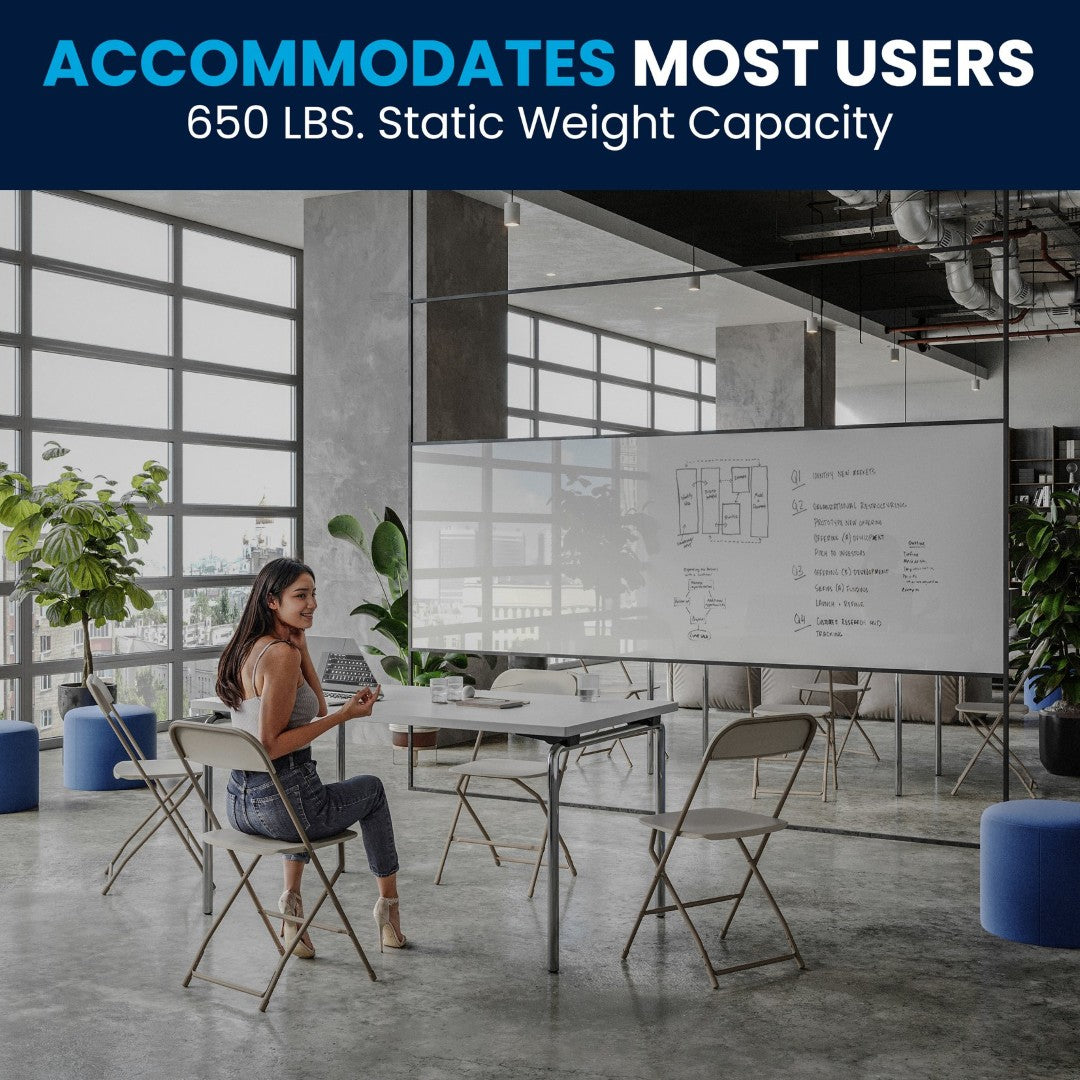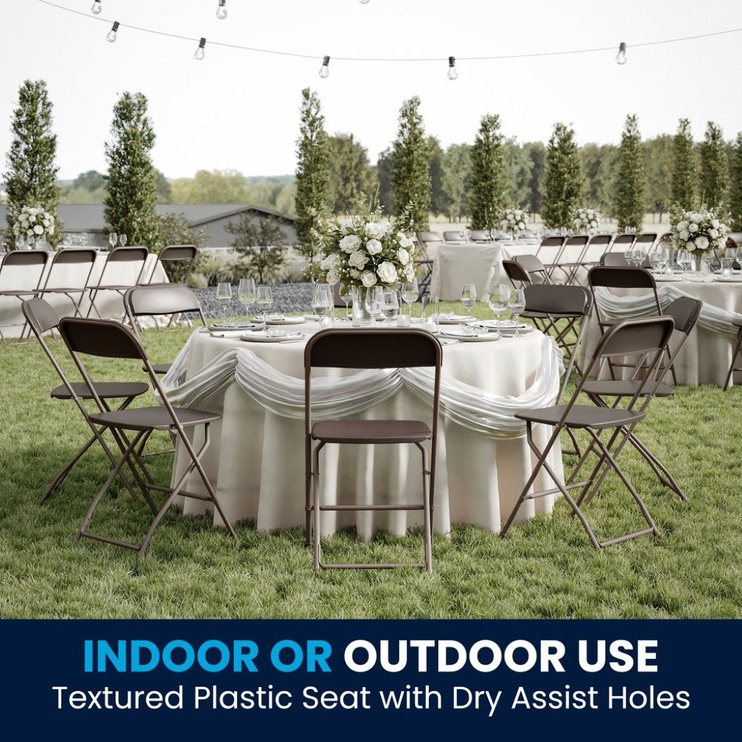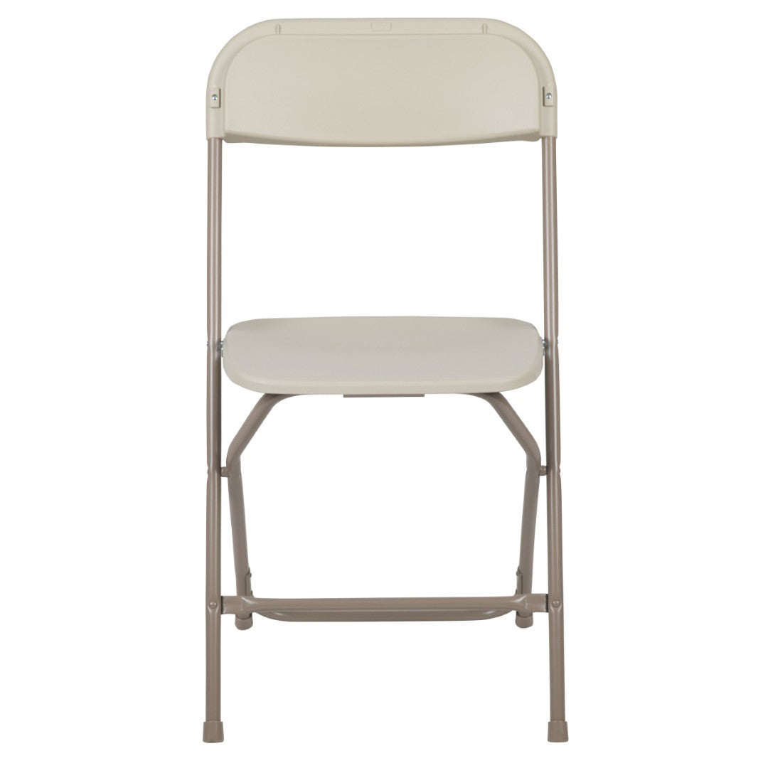 Comfortable, durable, and ready for any occasion, these commercial-grade beige folding chairs deliver reliable seating for events, businesses, and everyday use. Built from premium polypropylene and reinforced steel, they combine a contoured, textured seat with a rugged frame to provide secure, low-maintenance seating that stacks and stores with ease. Ideal for weddings, classrooms, meeting rooms, rental fleets, or backyard gatherings, this 2-pack offers professional performance and convenience without sacrificing comfort.