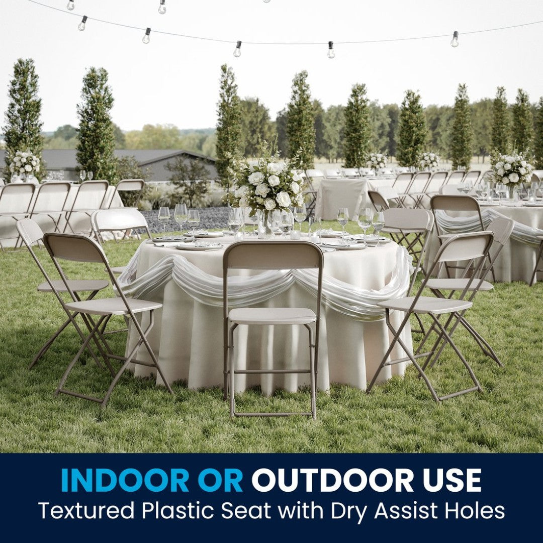 - Set of 2 Commercial Grade Beige Plastic Folding Chairs for indoor or outdoor events
