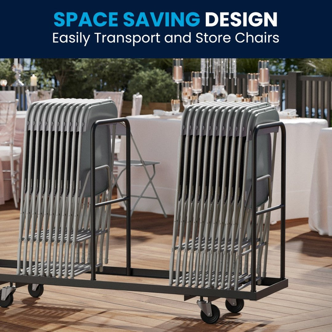 - Lightweight design easily stacks 50 high from the floor for nesting storage or floor maintenance; Folded Size: 17.5"W x 2.5"D x 38.25"H