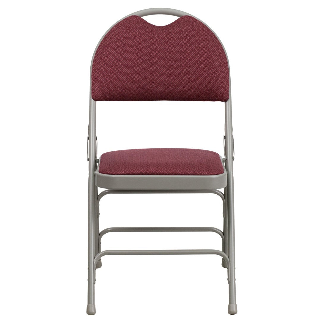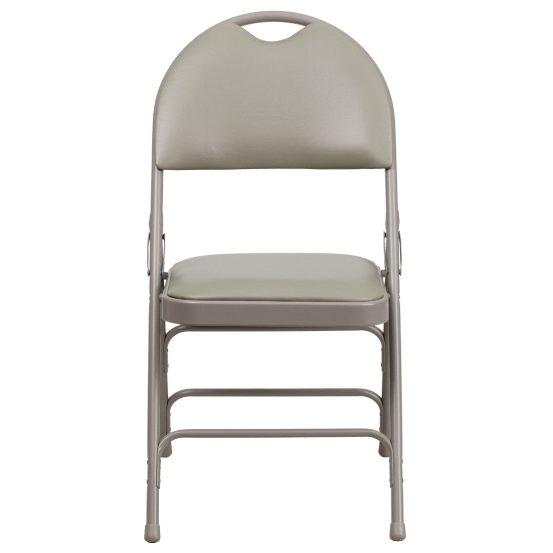 Upgrade your seating with a durable, comfortable solution that looks professional and packs away easily. These ultra-premium folding chairs feature a higher back, plush padding, and a rugged triple-braced steel frame — ideal for businesses, event venues, or extra home seating. Built for frequent use, they combine commercial-grade construction with a portable design that includes an easy-carry handle and non-marring glides to protect floors.