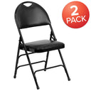 - Set of 2 padded metal folding chairs with convenient carrying handle cutout for easy transport and storage