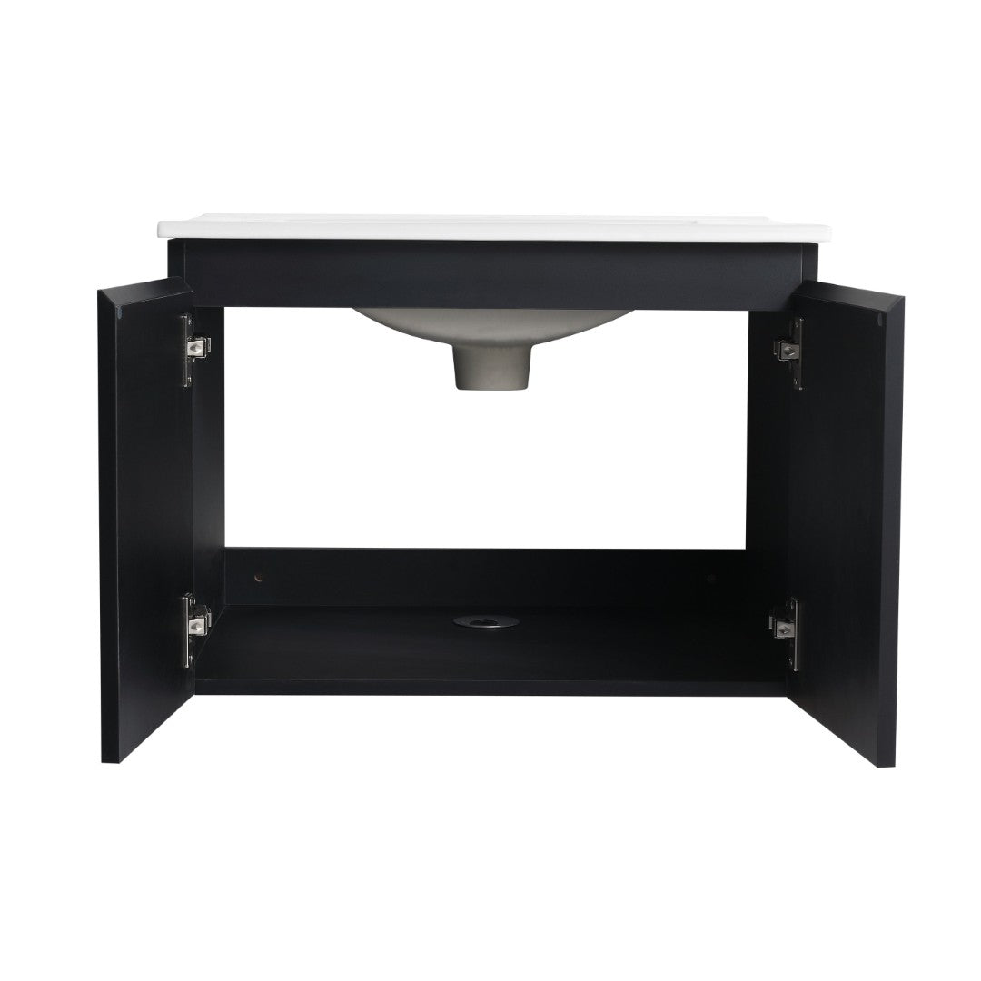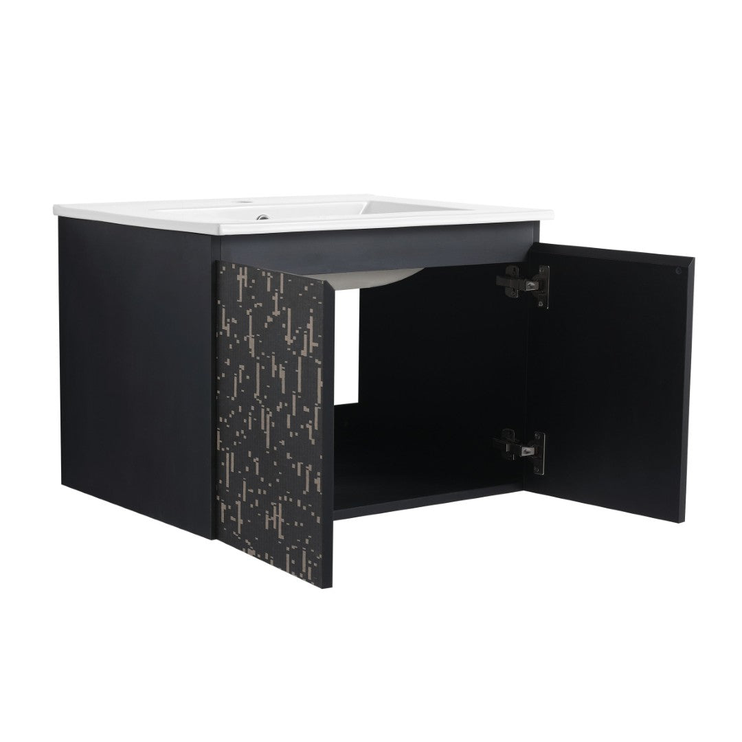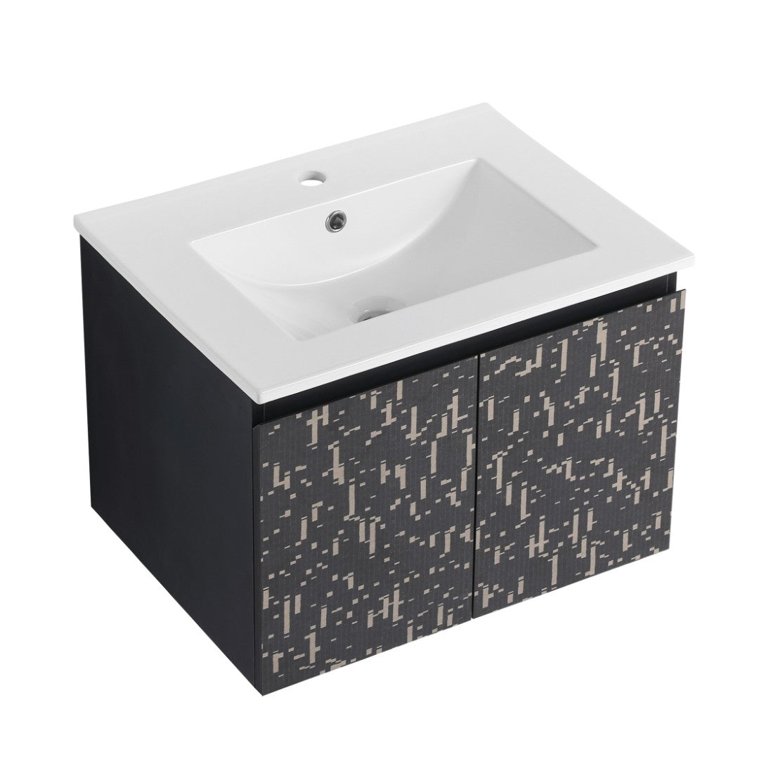 Give your bathroom a clean, modern upgrade with this 24" floating wall-mounted vanity that combines space-saving design, durable materials, and a high-quality ceramic sink. Ideal for small to medium bathrooms, the vanity’s sleek profile, soft-close doors, and artistic door panels deliver both function and refined style while keeping the floor area open and easy to clean.