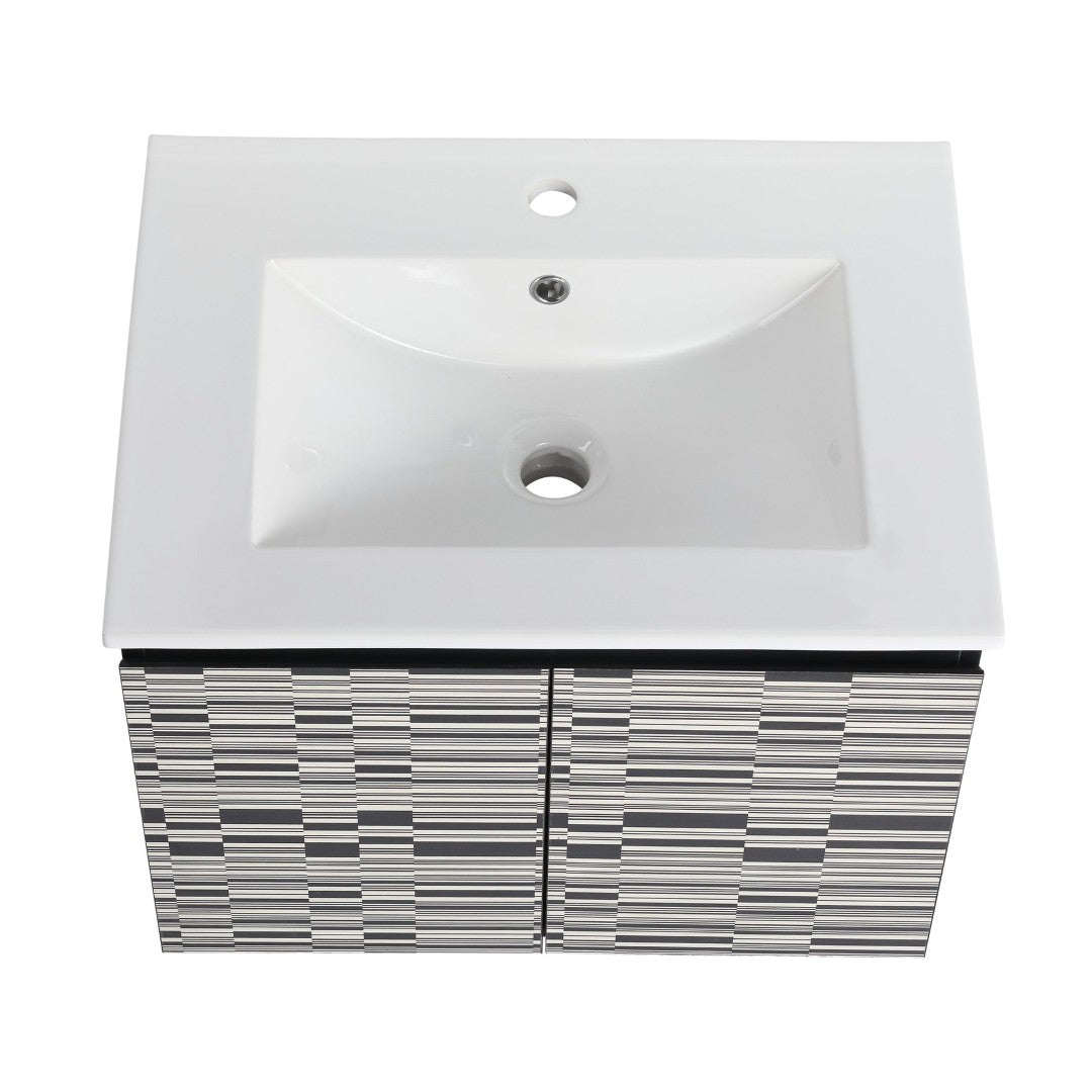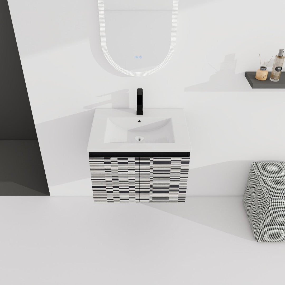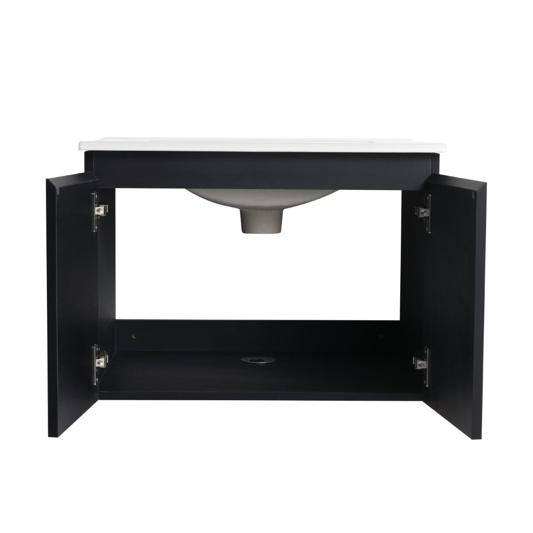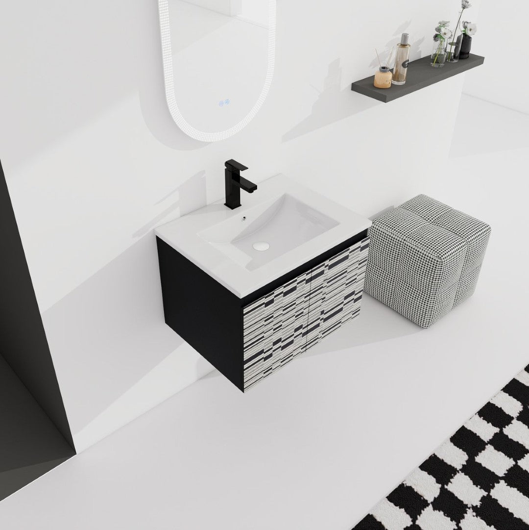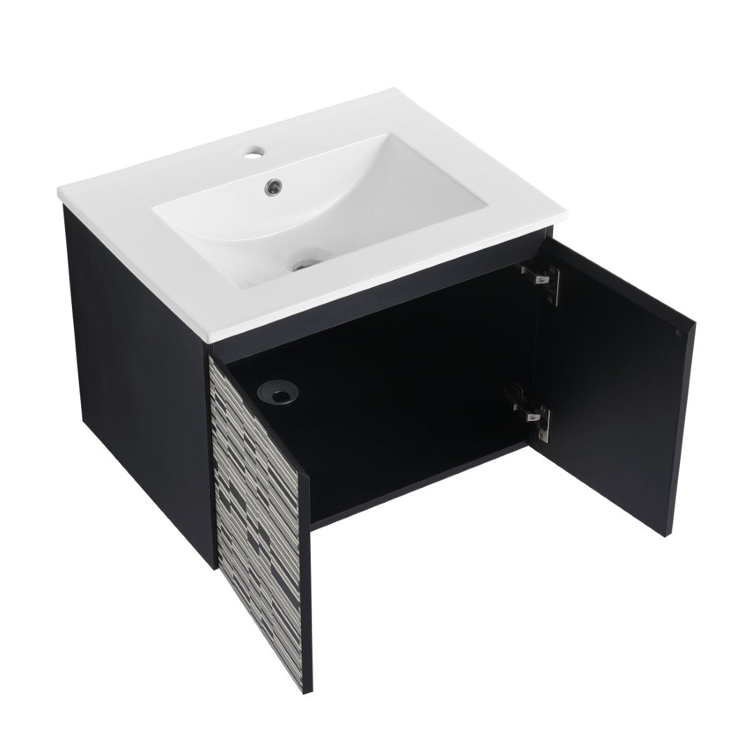 Give your bathroom a clean, modern upgrade with this 24" floating wall-mounted vanity that combines space-saving design, durable materials, and a high-quality ceramic sink. Ideal for small to medium bathrooms, the vanity’s sleek profile, soft-close doors, and artistic door panels deliver both function and refined style while keeping the floor area open and easy to clean.