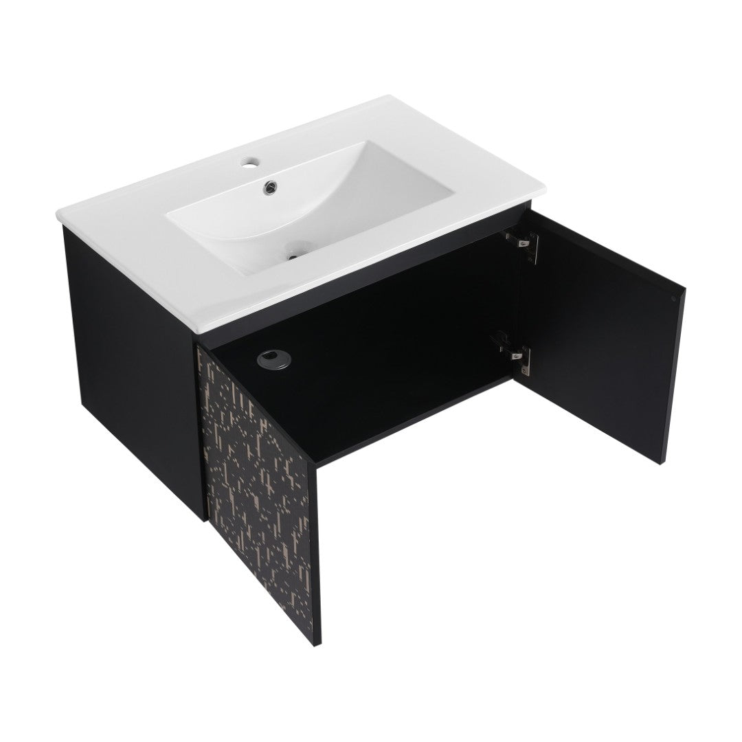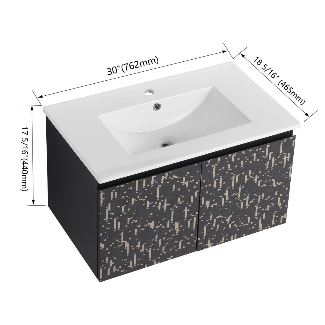 Transform your bathroom into a streamlined, modern retreat with this 30" floating wall-mounted vanity set. Combining a high-fired ceramic sink with a space-saving plywood cabinet finished in scratch- and water-resistant melamine, this vanity delivers clean lines, reliable function, and quiet, durable hardware—ideal for small bathrooms, powder rooms, or contemporary master baths.