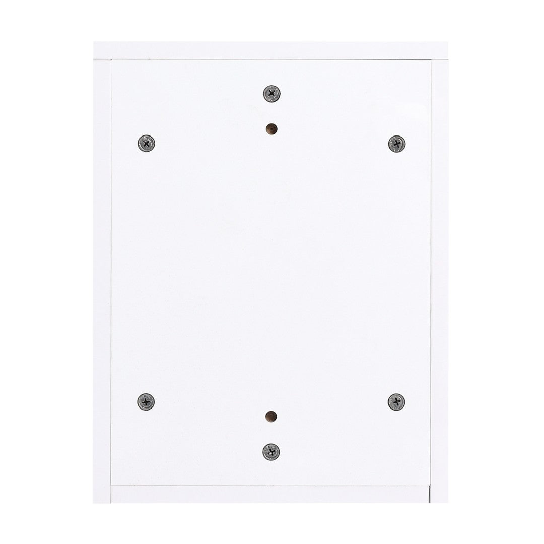 - Storage Capacity: Two-door cabinet with ample enclosed storage plus a separate small wall-mounted two-tier shelf (adjustable tier positions) for toiletries, decor, or frequently used items.