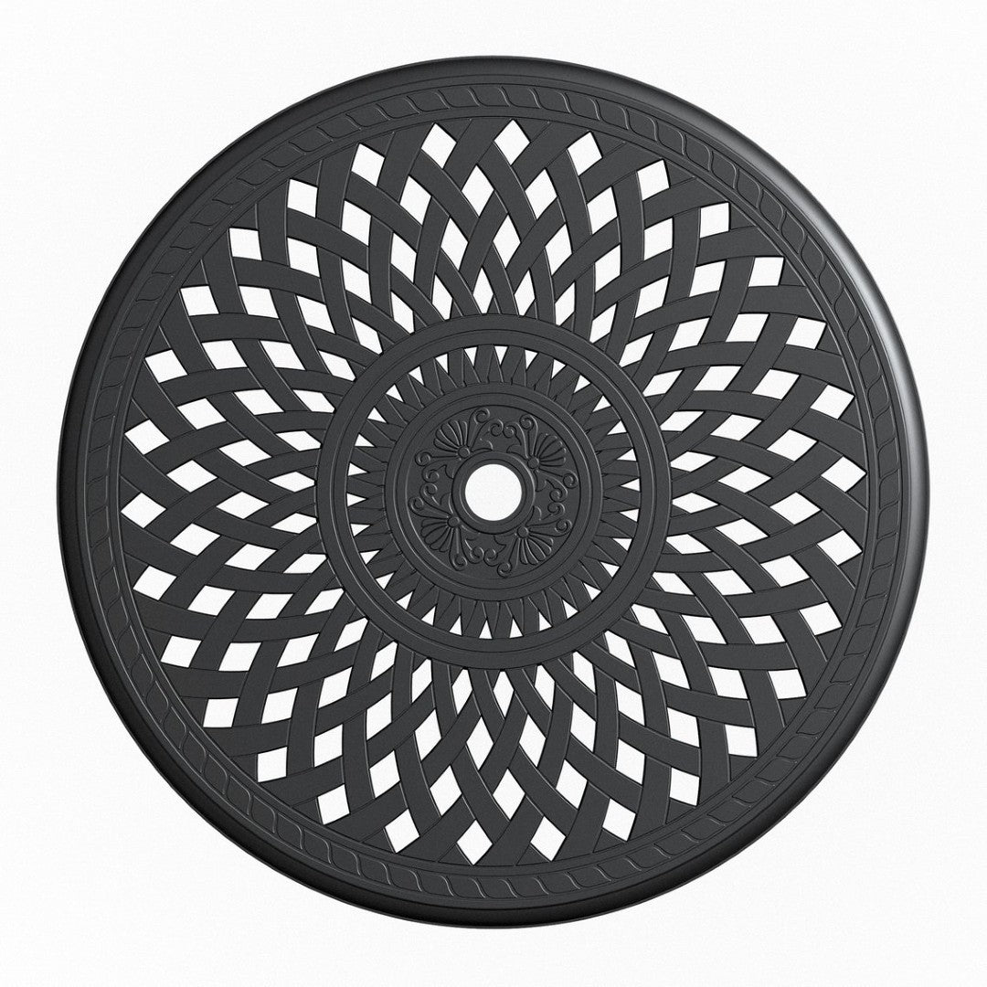 - Material & finish: Heavy-duty cast aluminum frame in a black finish resists rust and requires minimal maintenance.