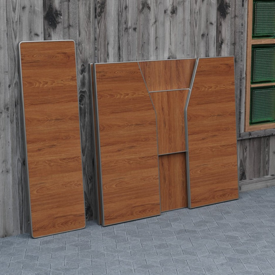 - Durable construction: high-pressure black laminate surfaces with aluminum trim over plywood provide a professional look and commercial durability.