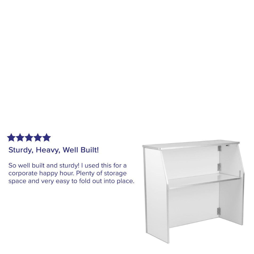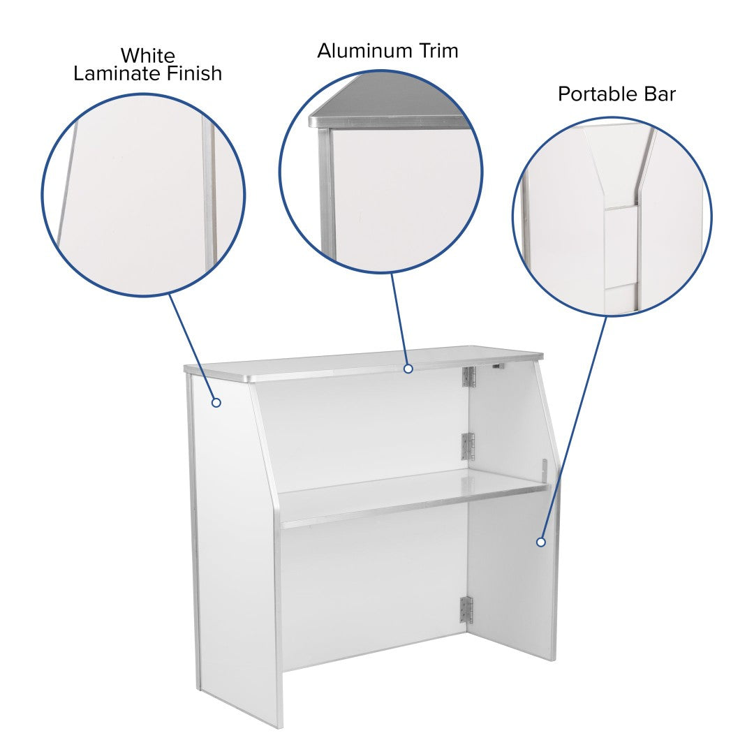 Keep your events flowing smoothly with a durable, portable bar designed for catering, bartending, and versatile event use. This sleek black laminate bar with aluminum trim packs commercial-grade strength into a compact, foldable design—ideal for hotels, weddings, conventions, backyard entertainment, and small-space home bars. Quick to set up and easy to store, it provides dedicated prep and presentation surfaces and a stable shelf for heavier items so you can serve with confidence wherever the job takes you.