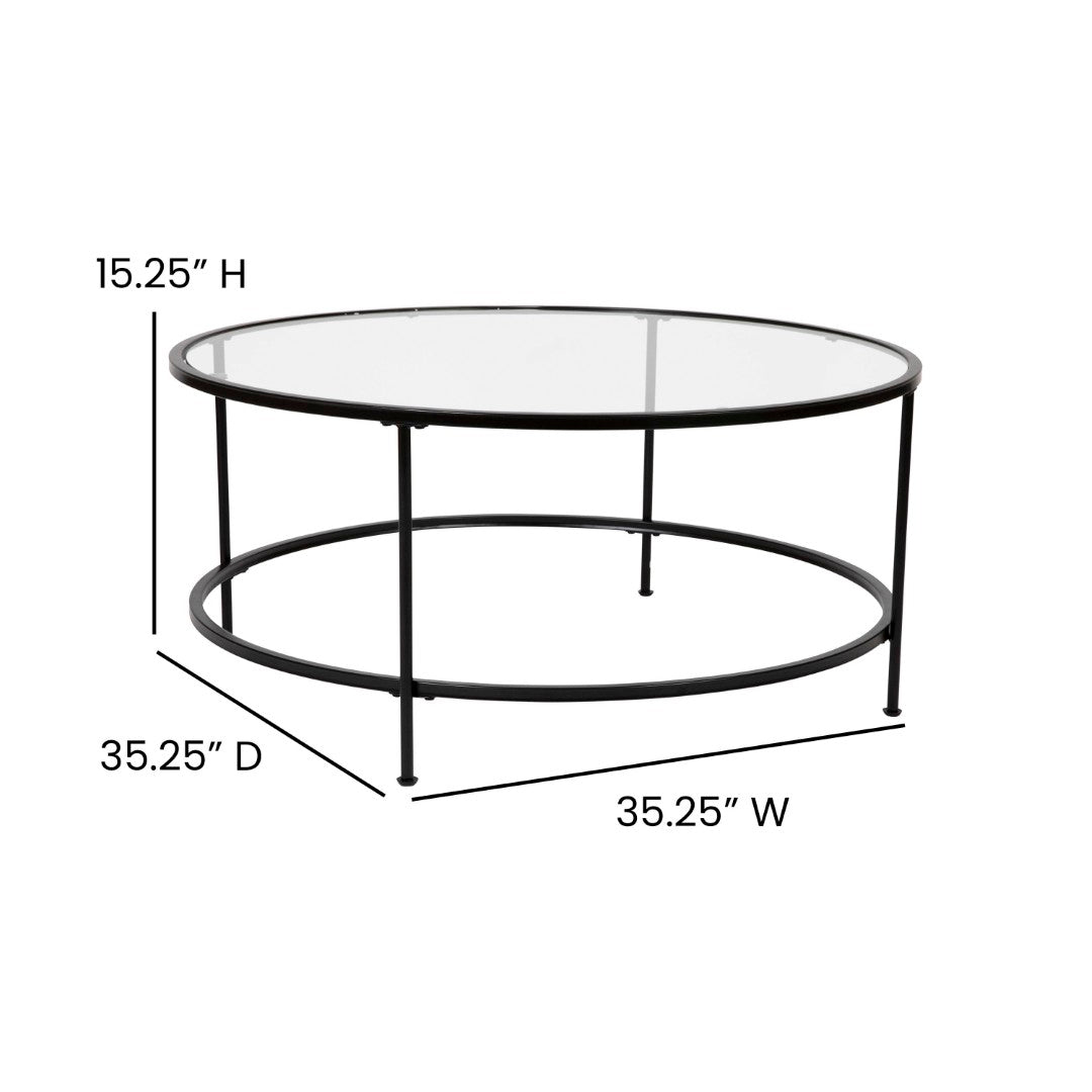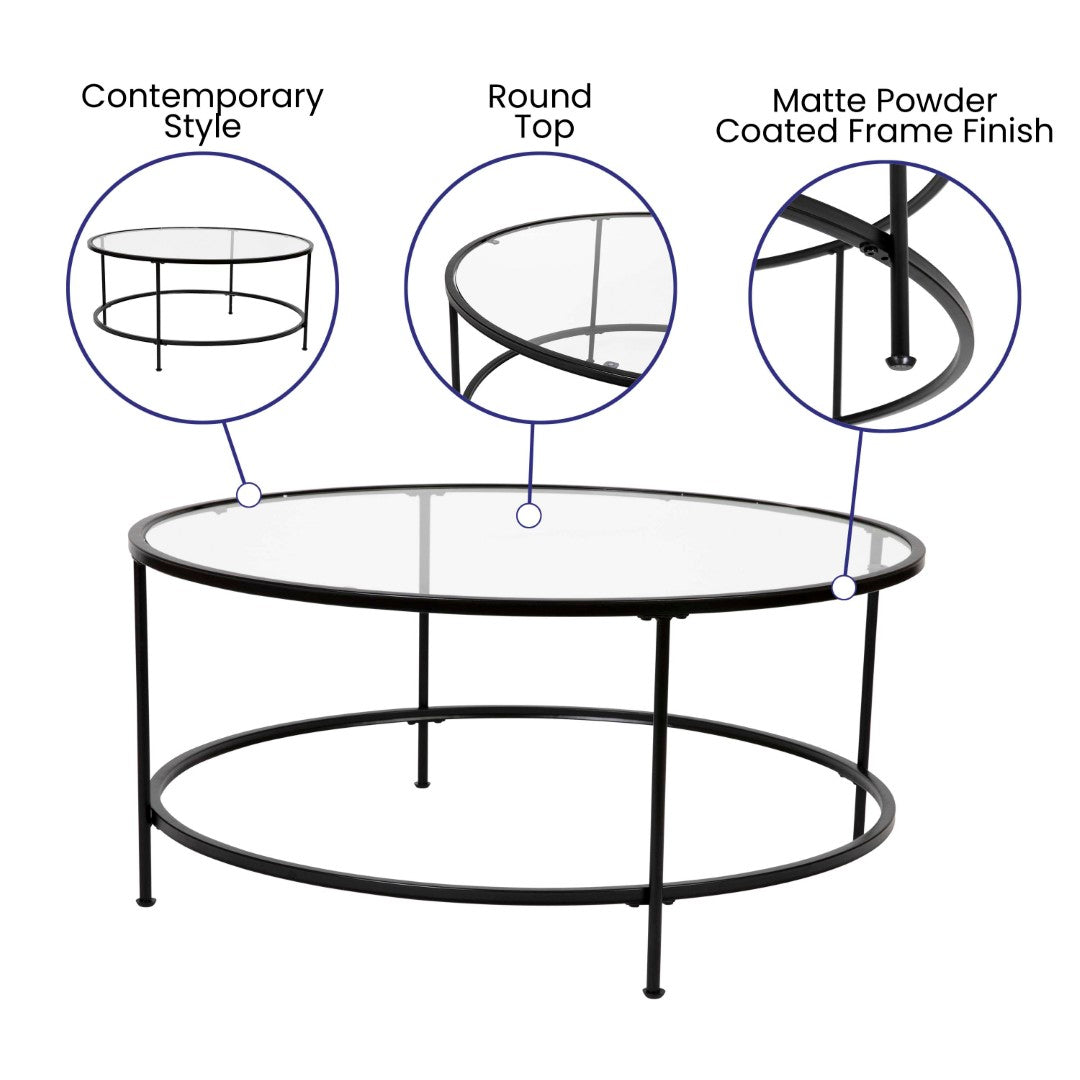 Bring modern elegance and practical durability to your living space with this round clear glass coffee table featuring a sleek matte black steel frame. Its minimalist silhouette, tempered glass surface, and powder-coated metal base combine to create a refined focal point that fits effortlessly in contemporary apartments, spacious living rooms, or cozy seating nooks. Designed for everyday use and easy upkeep, this table balances upscale style with functional details that protect floors and simplify maintenance.