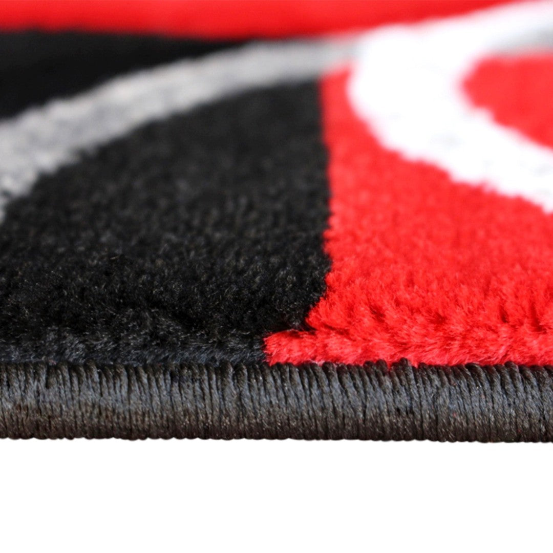 - Design: Modern geometric abstract pattern in shades of red, gray, and black—adds a contemporary focal point to hallways, entryways, bedrooms, or living rooms