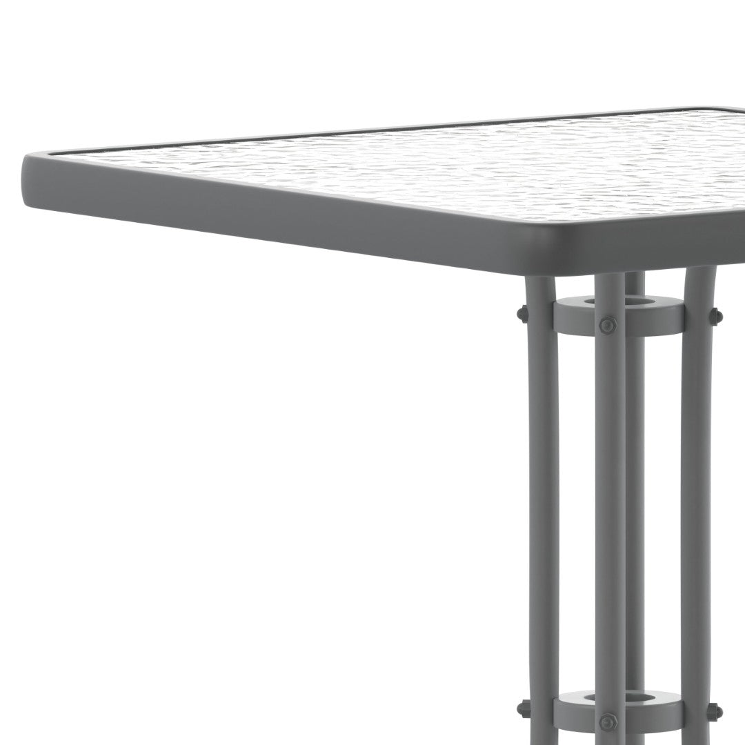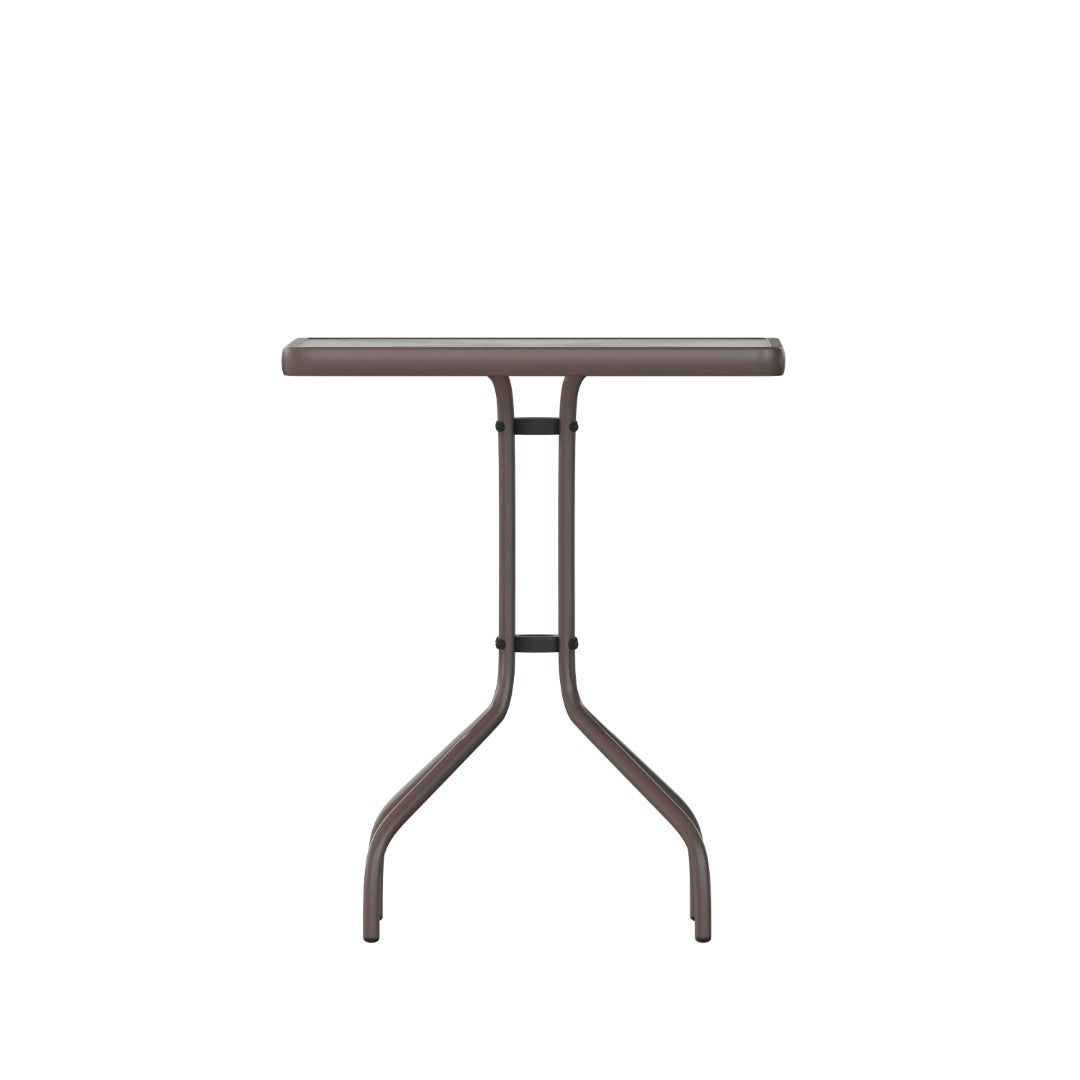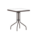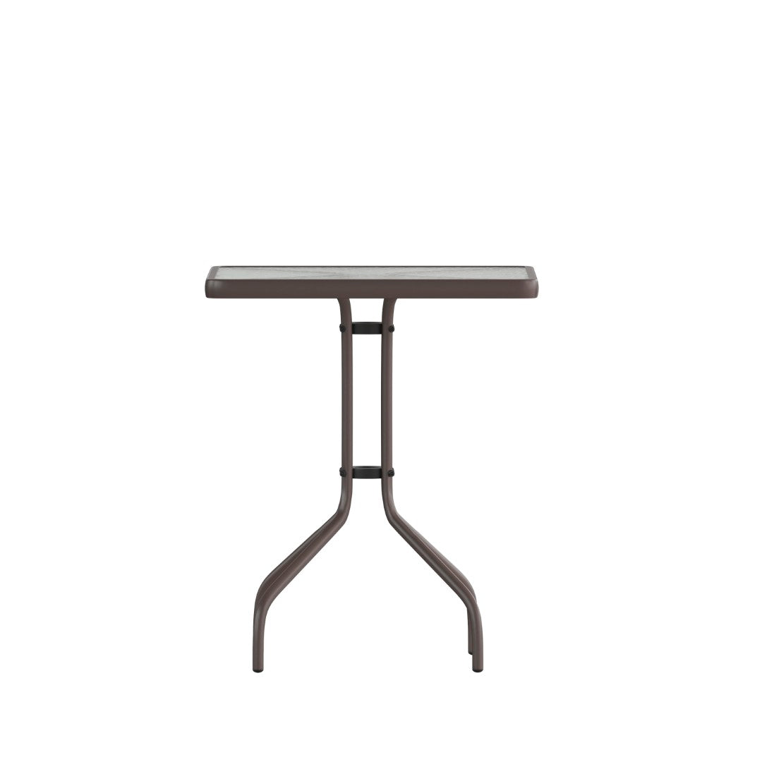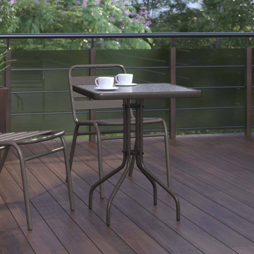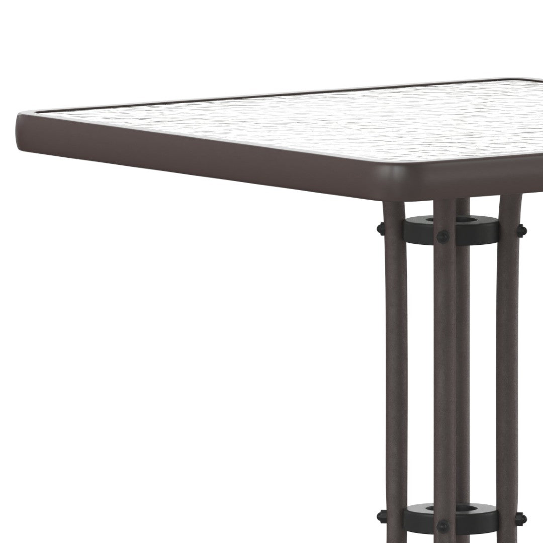 Create an inviting spot for two with a durable, stylish bistro table that performs beautifully indoors or out. The Barker tempered glass and metal table combines a ripple-textured, easy-to-clean surface with a bronze powder-coated frame for a refined café look that complements patios, balconies, sunrooms, restaurants, hotels, and casual dining spaces.
