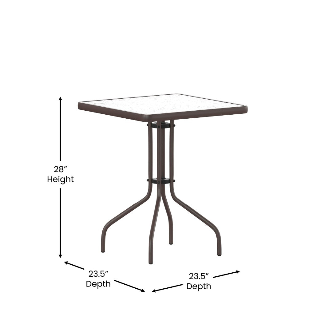 - Capacity & Configuration: Square bistro table sized for seating two—ideal for cafes, bistros, patios, and intimate dining areas