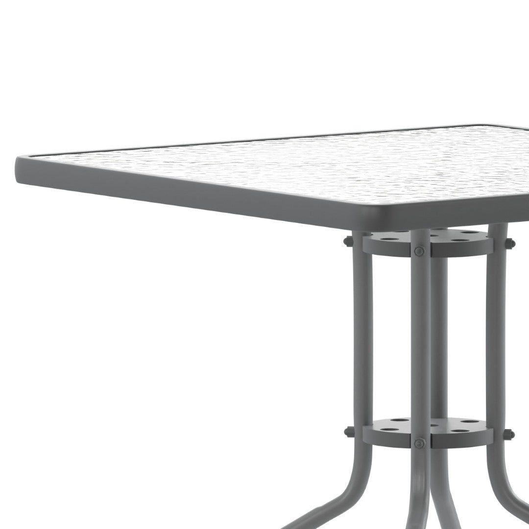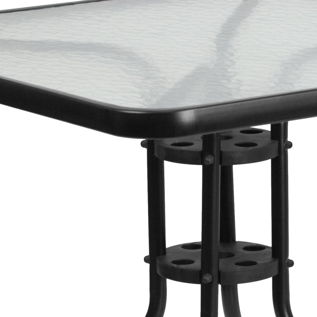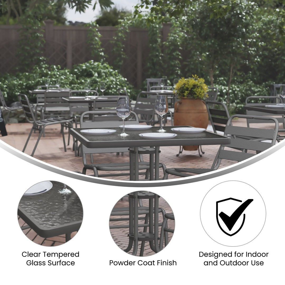 Create a welcoming outdoor or indoor dining spot with this durable tempered glass and metal bistro table — a compact, stylish solution for patios, cafés, restaurants, hotel terraces, or home balconies. The ripple-pattern clear glass top provides a smooth, level surface for meals and drinks, while the powder-coated steel frame delivers weather-resistant performance and a bold aesthetic that pairs easily with many seating styles.
