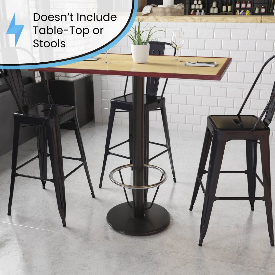 - Commercial-grade design recommended for use with 24"–30" round or square tabletops; ideal for restaurants, bars, cafeterias and employee break rooms