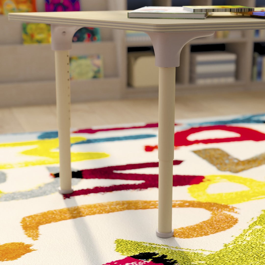 - Height-adjustable metal legs: Powder-coated steel legs adjust from 15" to 23" (1" increments) to accommodate preschool to 2nd-grade seating and varied uses.
