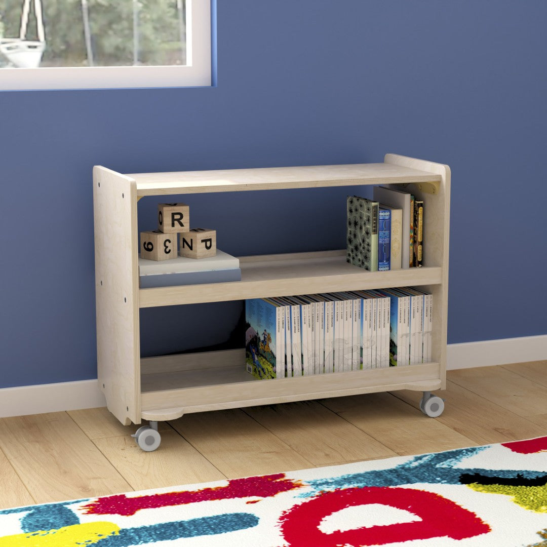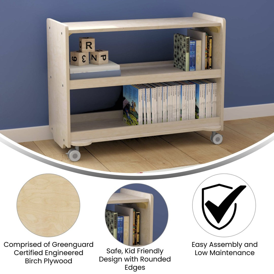 Keep classroom clutter under control with a sturdy, kid-friendly mobile storage cart designed for everyday use. This three-shelf wooden unit offers easy access for toddlers through early elementary students, smooth mobility when you need to reposition resources, and a durable finish that stands up to spills and daily wear. Thoughtful safety features and Greenguard Certified materials make it a practical, health-conscious choice for busy learning environments.