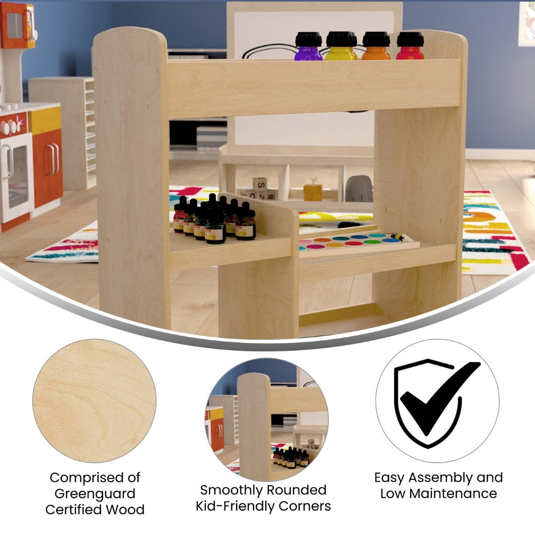 Bring order to busy classrooms and activity spaces with a durable, mobile storage cart designed for easy access, safety, and kid-friendly use. This double-sided wooden unit combines visible, organized storage with a compact footprint and smooth mobility so supplies can be brought to the work area or stowed away quickly to free up floor space.