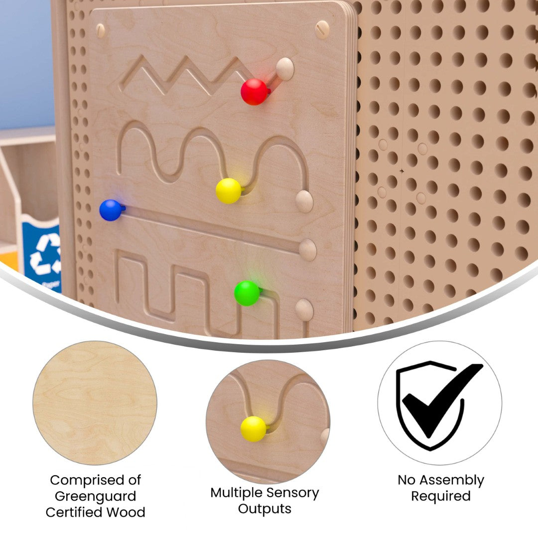 Engage preschoolers with a versatile, hands-on activity board designed to build fine motor control, pattern recognition, spatial reasoning, and early STEAM concepts through play. This commercial‑grade wooden panel combines tactile, visual, and auditory elements in a compact, kid-safe design that integrates seamlessly with existing STEAM wall systems or stands alone for floor or table activities.