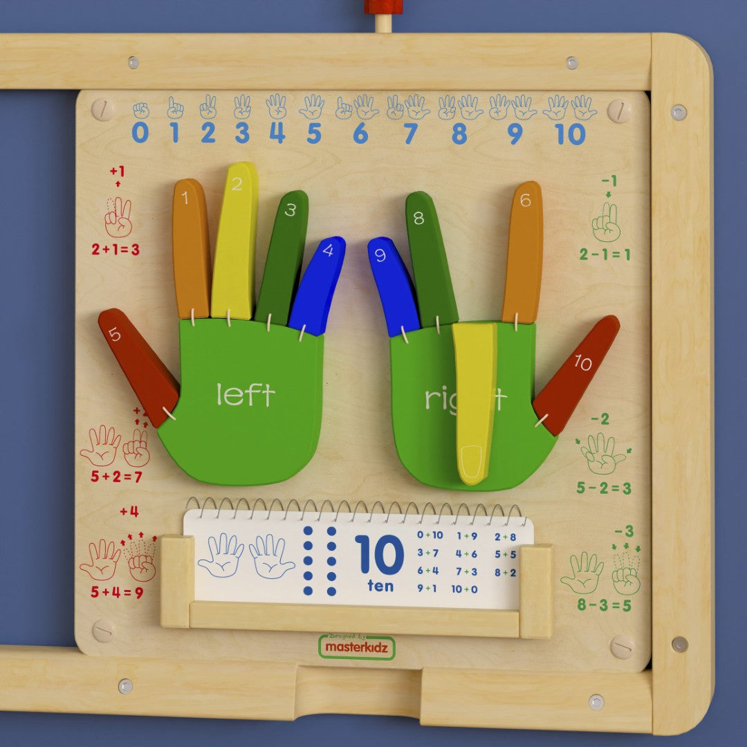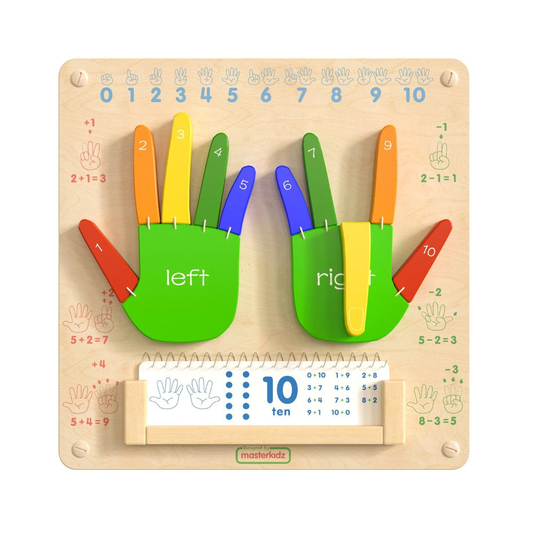 - Montessori-inspired counting mechanism: Wooden fingers that raise and lower with a distinctive click to reinforce counting, addition, and subtraction