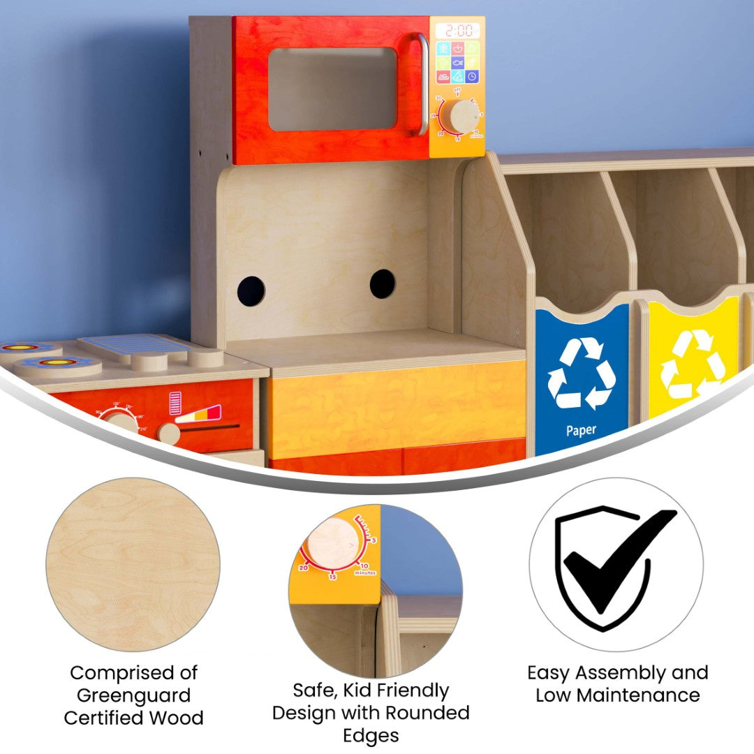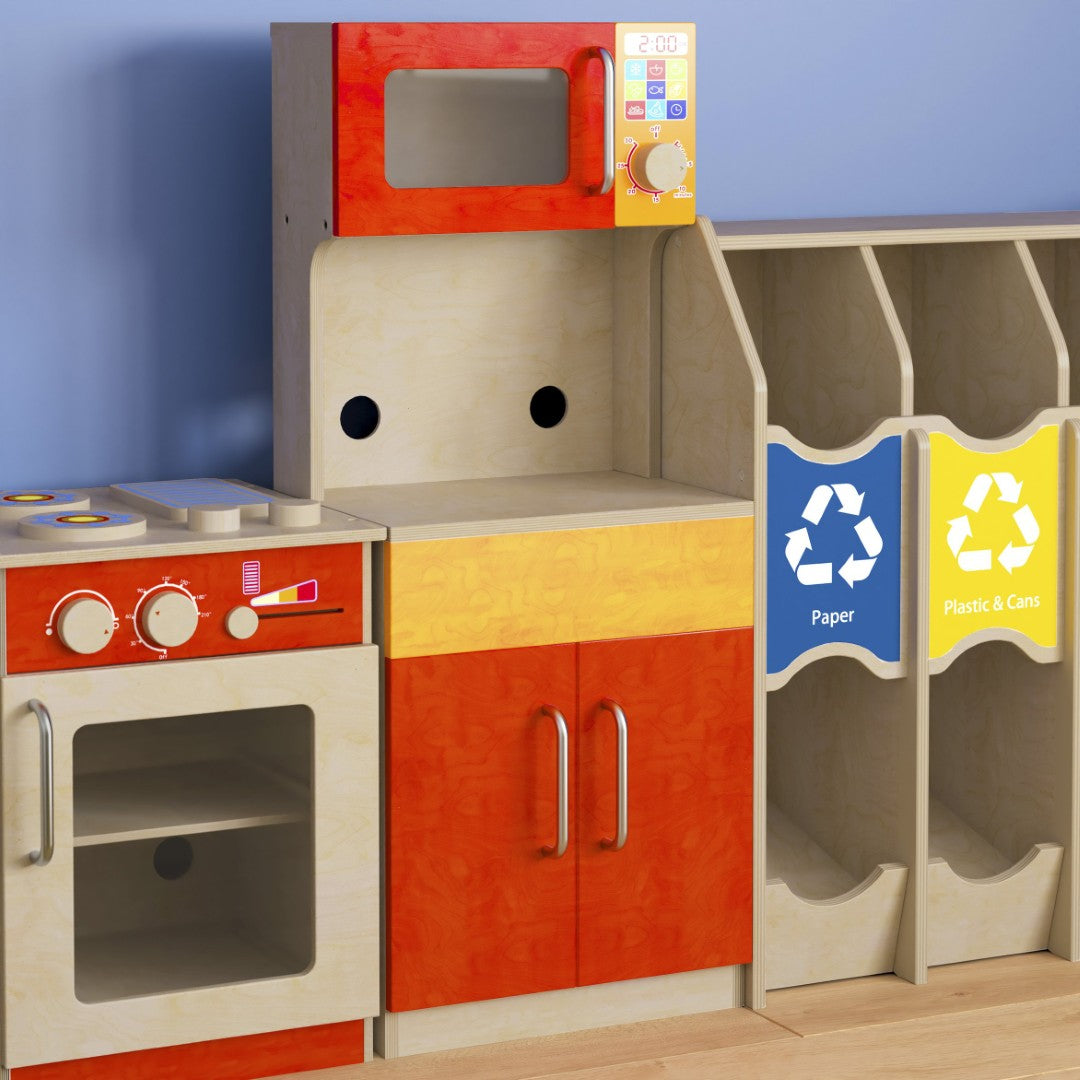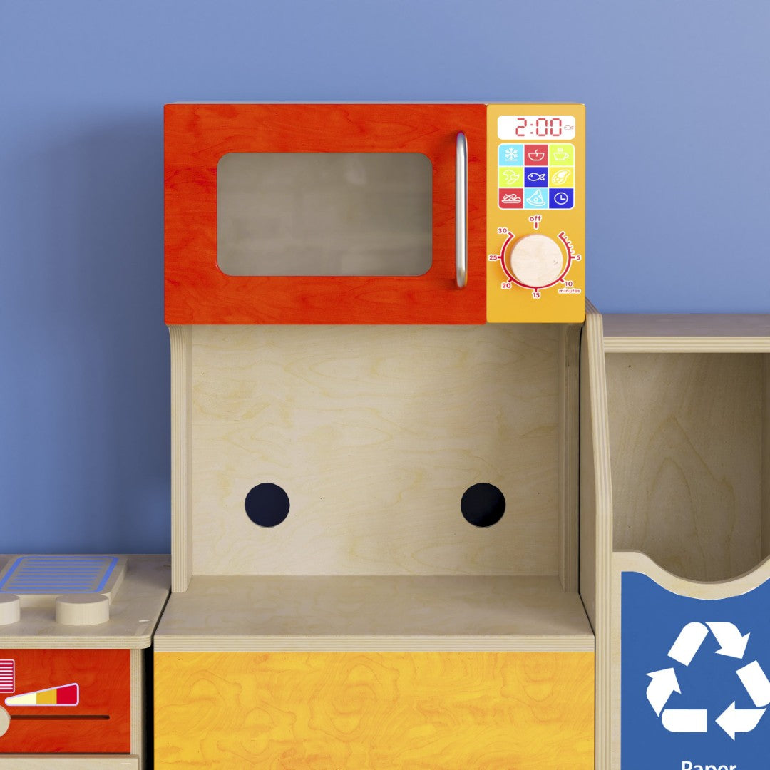 Spark imaginative play and teach practical life skills with this durable, classroom-ready wooden kitchen cabinet. Thoughtfully designed for early learners, it combines safety, longevity, and interactive features—like a working microwave door and turning knobs—to encourage cooperative play, role‑playing, and conversations about healthy eating. Its Greenguard certification and easy-to-clean finish make it ideal for childcare centers, preschools, and home learning environments.