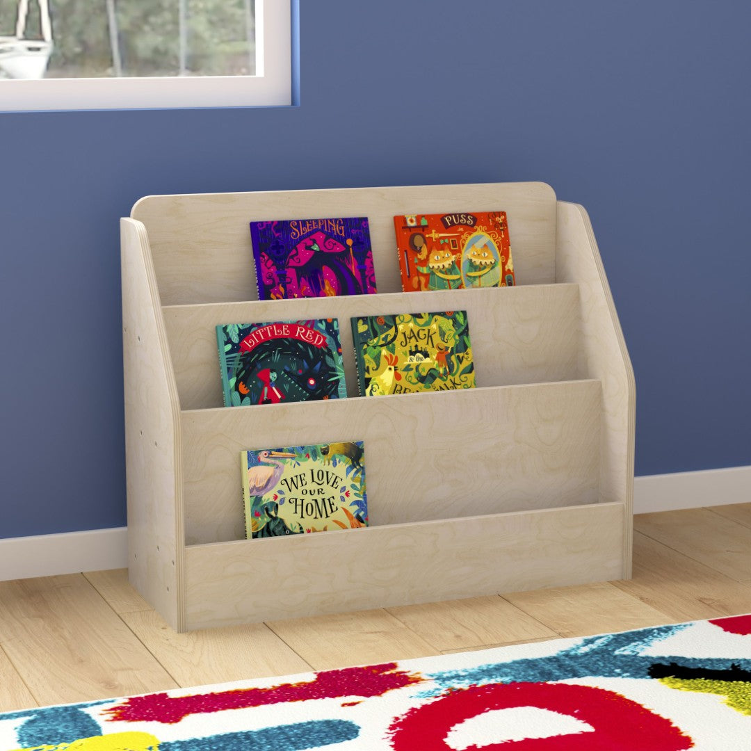 Keep your classroom or playroom tidy and inviting with this sturdy, child-friendly 3-tier wooden book display. Designed for easy access by toddlers through early elementary students, the shelf showcases books and materials face-forward for easy selection while keeping them neatly upright. Durable, easy-to-clean construction and thoughtful safety features make it a practical choice for educators and caregivers building an organized learning space.