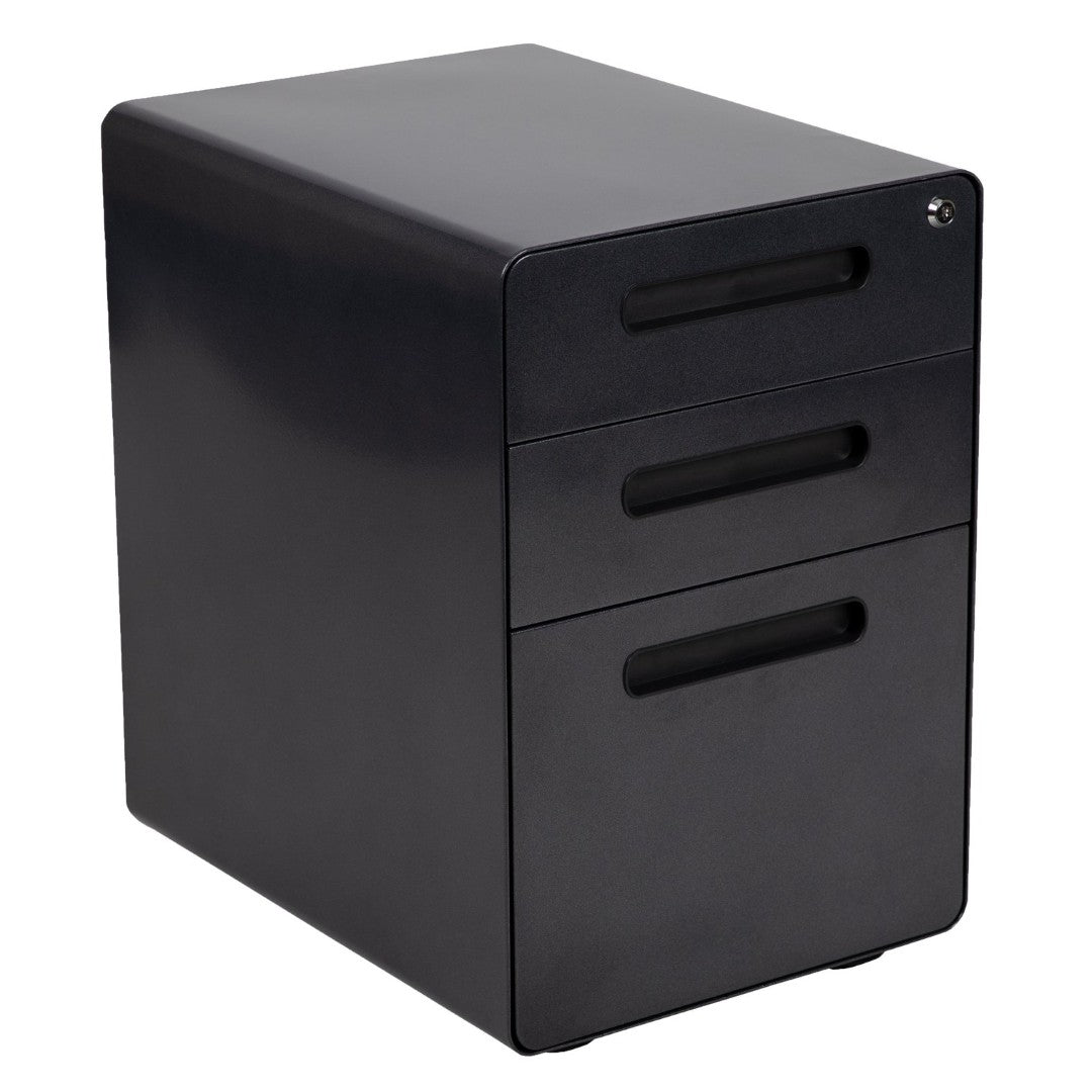 - Black 3-Drawer Filing Cabinet with lock and keys: 16"W x 21"D x 24"H