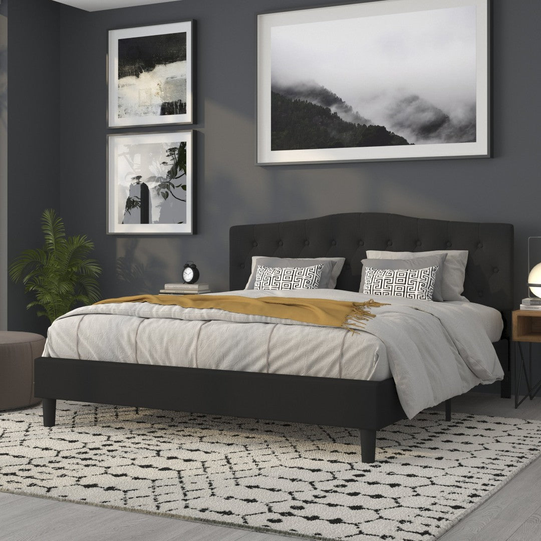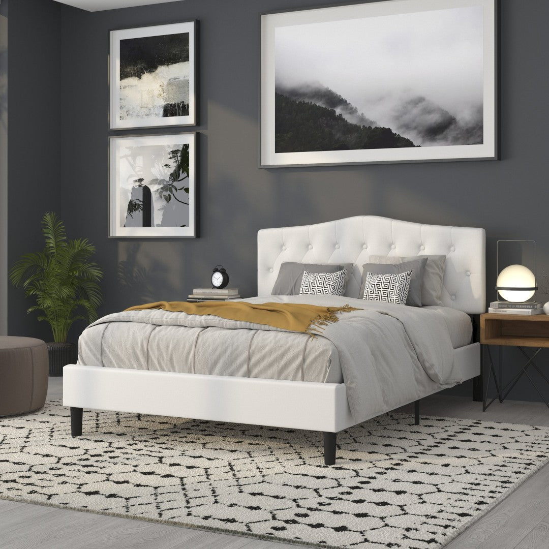 - Full-size panel headboard with contemporary silhouette—slim profile keeps the room feeling spacious