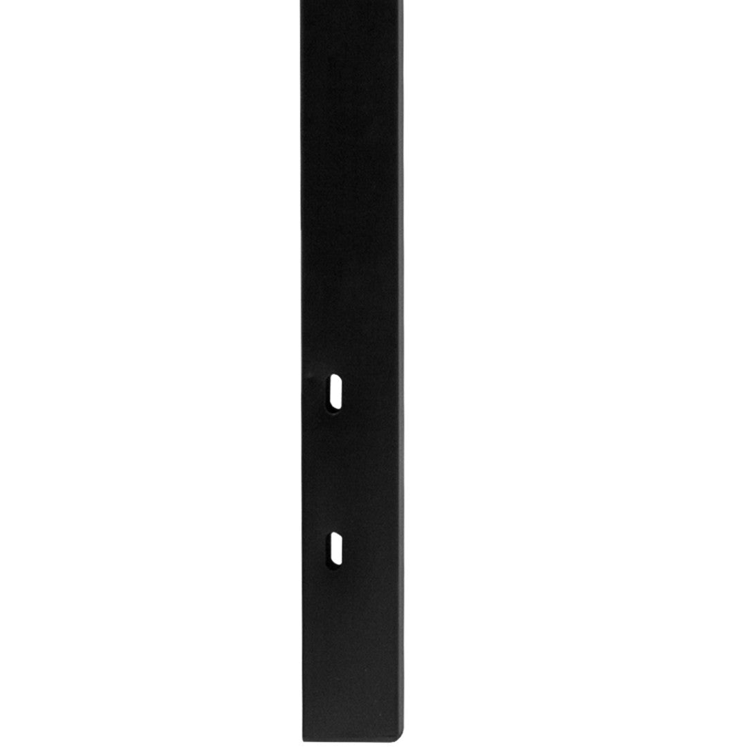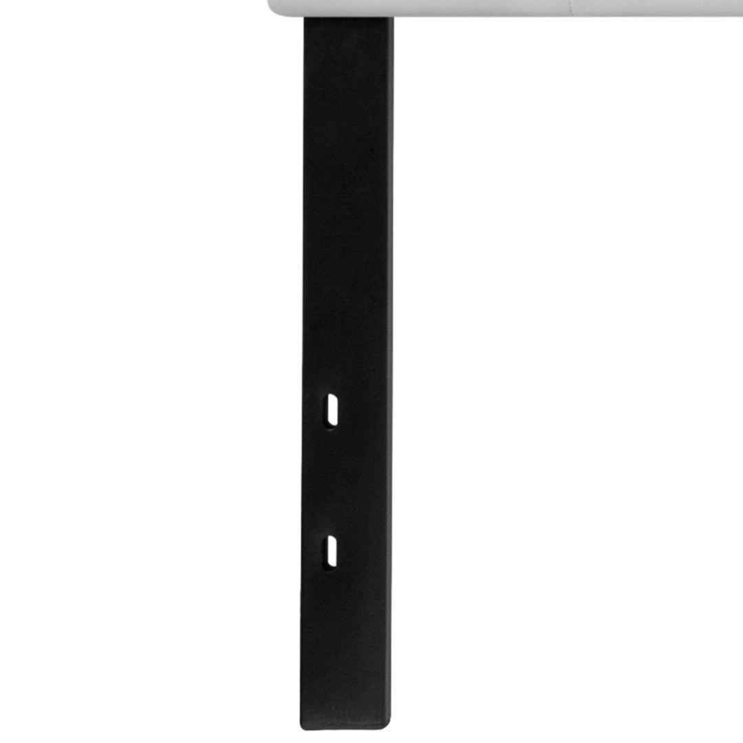 - Black metal stands with adjustable bed rail slots fit standard bed frames