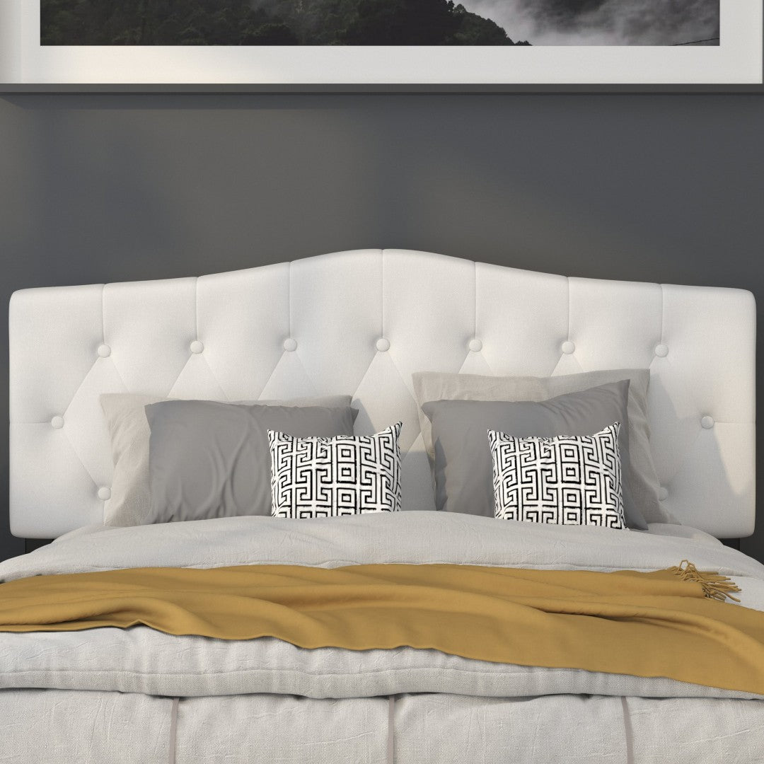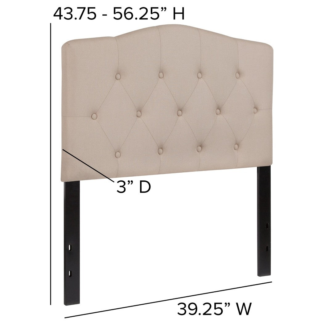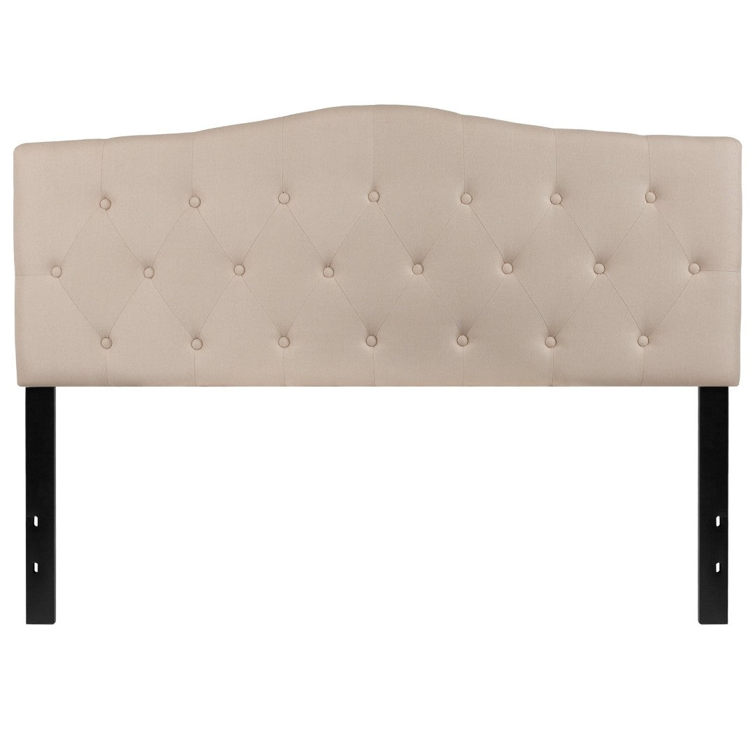 Give your bedroom an instant style upgrade with this tailored, space-saving full-size headboard. Its elegant beige fabric, button-tufted diamond stitching, and slim profile create a cozy yet modern focal point that supports comfortable reading, laptop use, and relaxed lounging in bed. Designed for easy installation and versatile fit, it refreshes guest rooms, apartments, or master suites without overwhelming the room.
