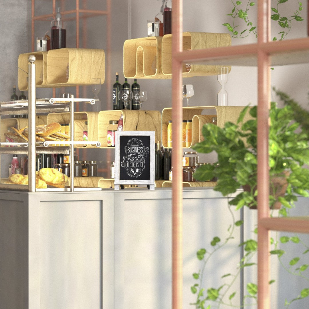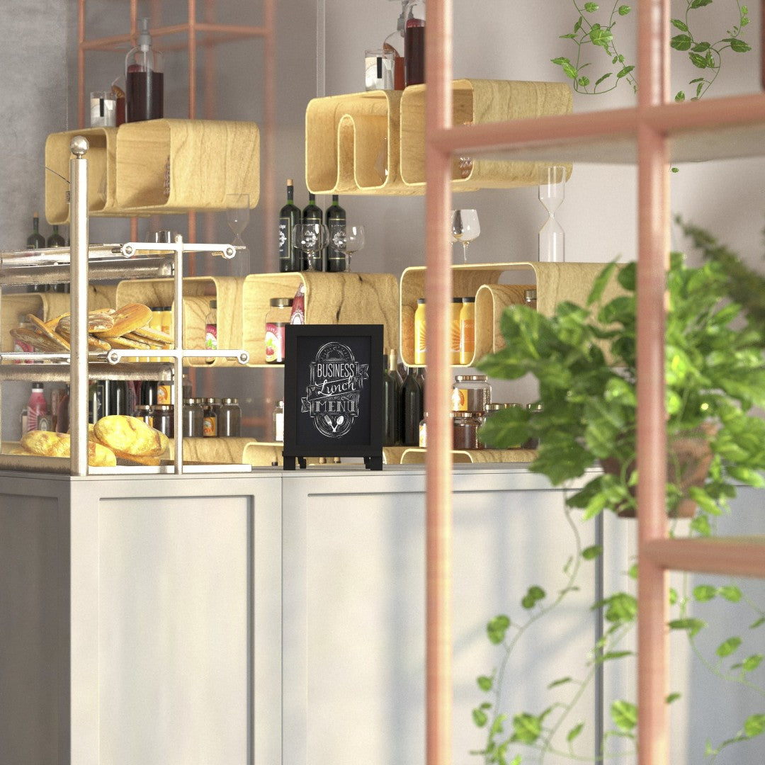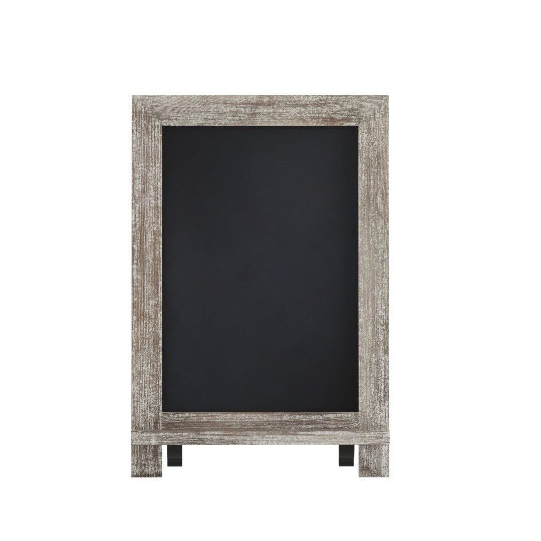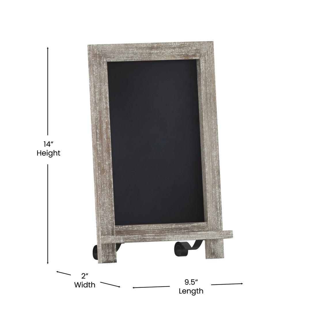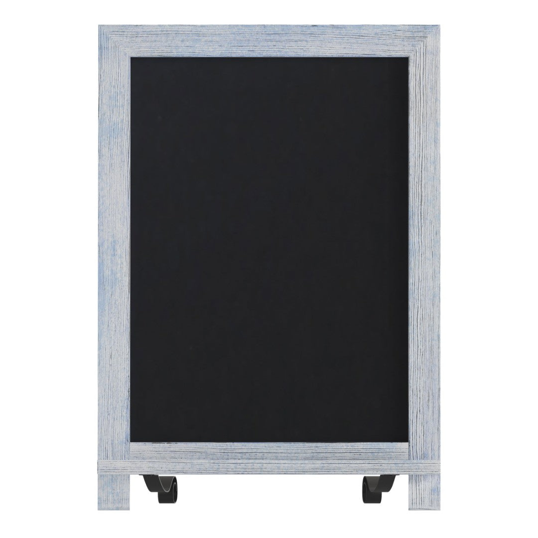 Keep your home or business organized with this elegant set of 10 weathered tabletop chalkboards. Each board pairs a classic distressed pine frame with a durable, non-porous porcelain steel writing surface that works with liquid chalk markers or traditional chalk. Use them freestanding on counters and tables or fold the scrolled metal legs and hang them on the wall for a polished message center — perfect for menus, reminders, seating assignments, or event signage.
